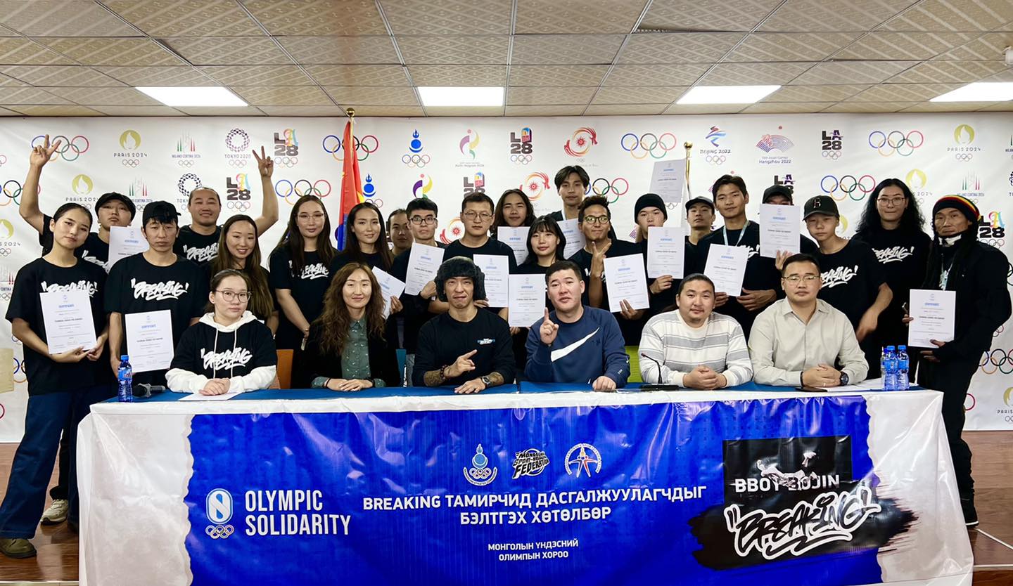 Олон улсын олимпын хорооны Эв санааны нэгдлээс ивээн тэтгэн МҮОХ-ноос зуны олимпын хөтөлбөрт багтсан "Брейкинг“ төрлийн дасгалжуулагчид, тамирчдыг чадваржуулах сургалт зургаан өдөр үргэлжлэн “Олимпик хаус”-т хаалтын ажиллагааг зохион байгууллаа.