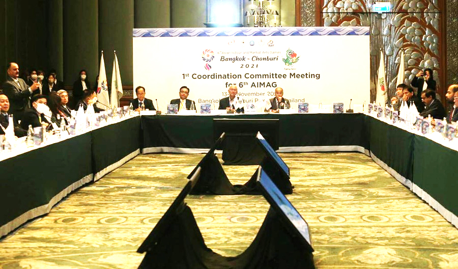 Азийн олимпын зөвлөлөөс Тайланд Улсын Бангкок хотноо Азийн танхимын болон тулааны спортын наадмын Зохицуулах хорооны анхдугаар хурлыг хийжээ. Зохион байгуулах хорооны зүгээс магадлан итгэмжлэл, тээвэр ложистик, мэдээллийн технологийн шийдэл, телевизийн шууд дамжуулалт, маркетинг, анагаах ухаан, допингийн хяналт зэрэг сэдвээр илтгэл тавьсан байна.