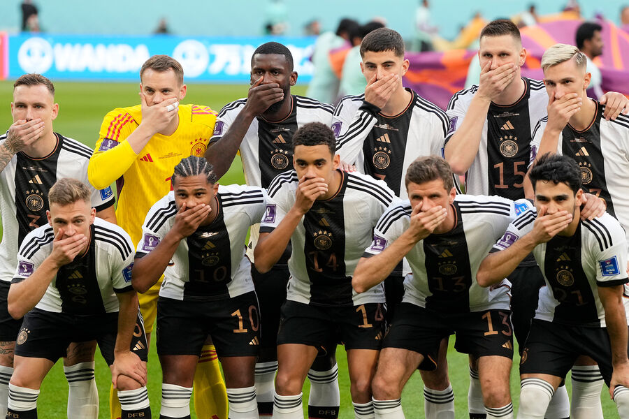 Олон улсын хөл бөмбөгийн холбоо Германы шигшээ багийг эсэргүүцлийн үйлдэл хийсний төлөө шийтгэхгүй гэж мэдэгдсэн. Тухайлбал, Японы багтай хийсэн тоглолтынхоо өмнө Германы хөл бөмбөгчид багийн гэрэл зураг татуулахдаа амаа гараараа хаасан билээ. Ингэснээр тэд Катар-2022 ДАШТ-нд багийн ахлагчдад солонгон тууз гартаа зүүхийг хориглосон шийдвэрийг эсэргүүцсэн юм.