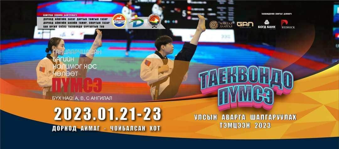 Хойд Солонгосын ITF таэквондогийн "MNU TEAM CHAMPIONSHIPS-2023" тэмцээн амжилттай болж өндөрлөсөн. Харин Өмнөд Солонгосын WTF таэквондогийн пүмсэийн УАШТ энэ сарын 21-23-ны өдрүүдэд Дорнод аймгийн Чойбалсан хотод болно. Энэ удаагийн пүмсэ буюу хөдөлгөөнт тоот дасгалын улсын аварга шалгаруулах тэмцээн ганцаарчилсан, багийн, холимог хосын, чөлөөт гэсэн төрлөөх өсвөр үе, залуучууд, насанд хүрэгчдийн А, В, С ангиллаар болох юм байна.