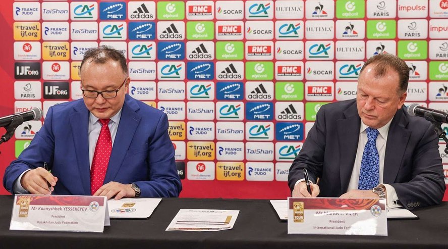 Парисын гранд слам тэмцээний хүрээнд Казахстаны Жүдо бөхийн холбоо болон Олон улсын жүдо бөхийн холбооны албан ёсны уулзалт боллоо. Уулзалтын үеэр Олон улсын жүдо бөхийн холбооны ерөнхийлөгч Мариус Визер, Казахстаны Жүдо бөхийн холбооны ерөнхийлөгч Куанышбек Эсекеев нар хоёр талын хэлэлцээрт гарын үсэг зурлаа.