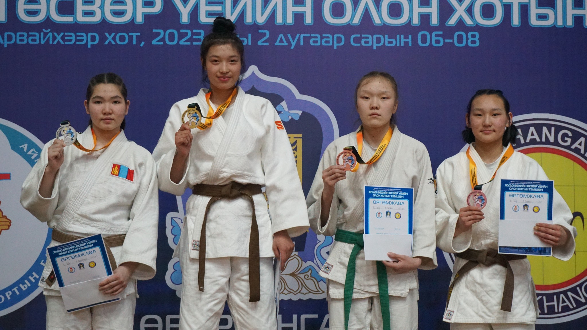 - Жүдо бөхийн өсвөр үеийн улсын аварга шалгаруулах тэмцээнд гурван удаа оролцож байсан. Тэр гурван улсын аваргаас алт, мөнгө, хүрэл медалийг авч байлаа. Харин залуучуудын улсын аварга шалгаруулах тэмцээнд барилдаж үзээгүй.