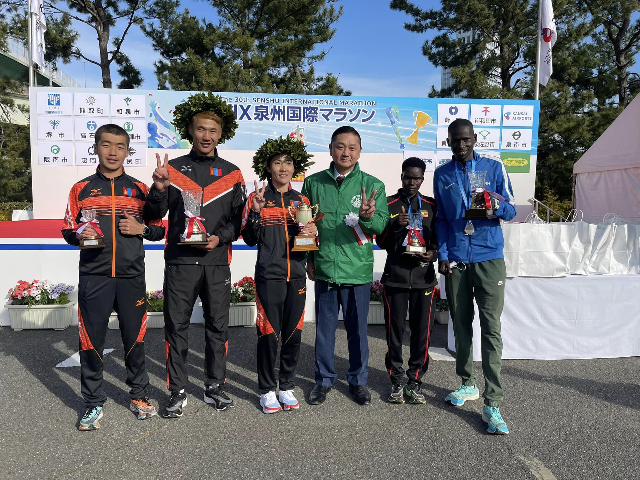 Япон Улсын Изүмисано хотод зохиогдсон “KIX senshu” олон улсын марафон гүйлтийн тэмцээнд эрэгтэй эмэгтэй түрүүг монгол тамирчид авсан байна. Энэ удаагийн марафон гүйлтийн тэмцээнд Нарандуламын Мөнхбаяр, Галбадрахын Хишигсайхан нар амжилттай оролцож, алтан медаль хүртжээ. Мөн анхныхаа олон улсын тэмцээндээ Тогтохбаярын Элбэг анхлан хөл тавьж амжилттай гүйсэн байна.