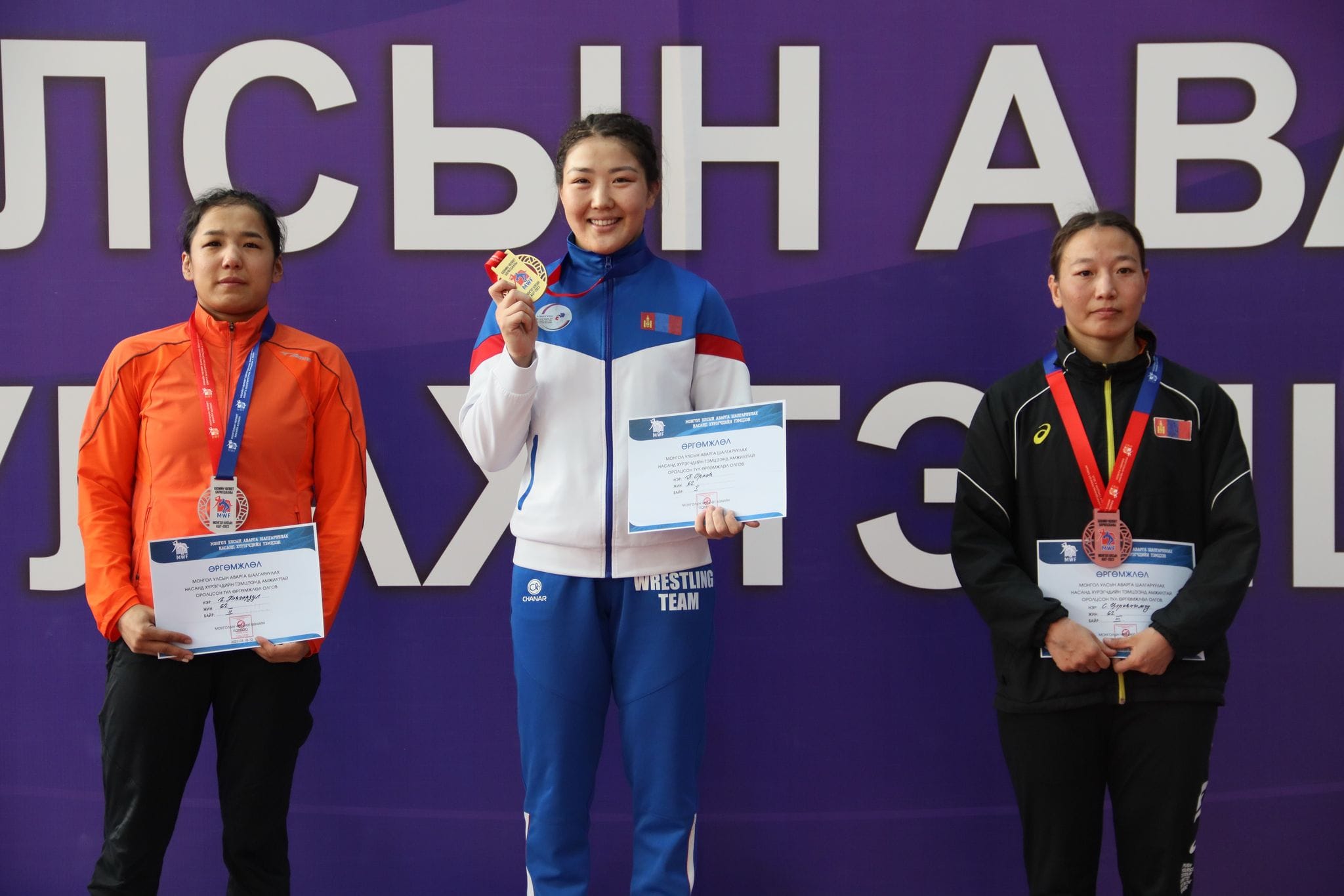 Эмэгтэйчүүдийн 62 кг-ын жингийн медальтнууд: