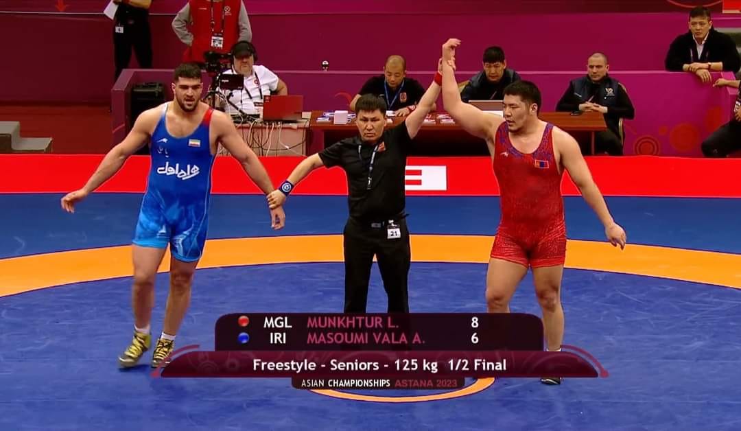 “Астана-2023” Азийн аварга шалгаруулах тэмцээний 70 кг-ын жинд цэргийн ДАШТ-ий хүрэл медальт ОУХМ Ганхуягийн Ханбүргэд 1/8 шигшээ барилдаанд өсвөр үе, залуучуудын ДАШТ-ий хүрэл медальт Японы Ёшиносүкэ Аоягид 9:19-өөр ялагдав. “Алдар” спорт хорооны тамирчин ОУХМ Баасанцогтын Өлзийсайхан 97 кг-ын жинд тэгшитгэлийн барилдаанд ДАШТ-ий хүрэл медальт, Азийн аварга Ираны бөх Можтаба Голейжтэй барилдаж 12:0-ээр оноогоор цэвэр ялагдсан.