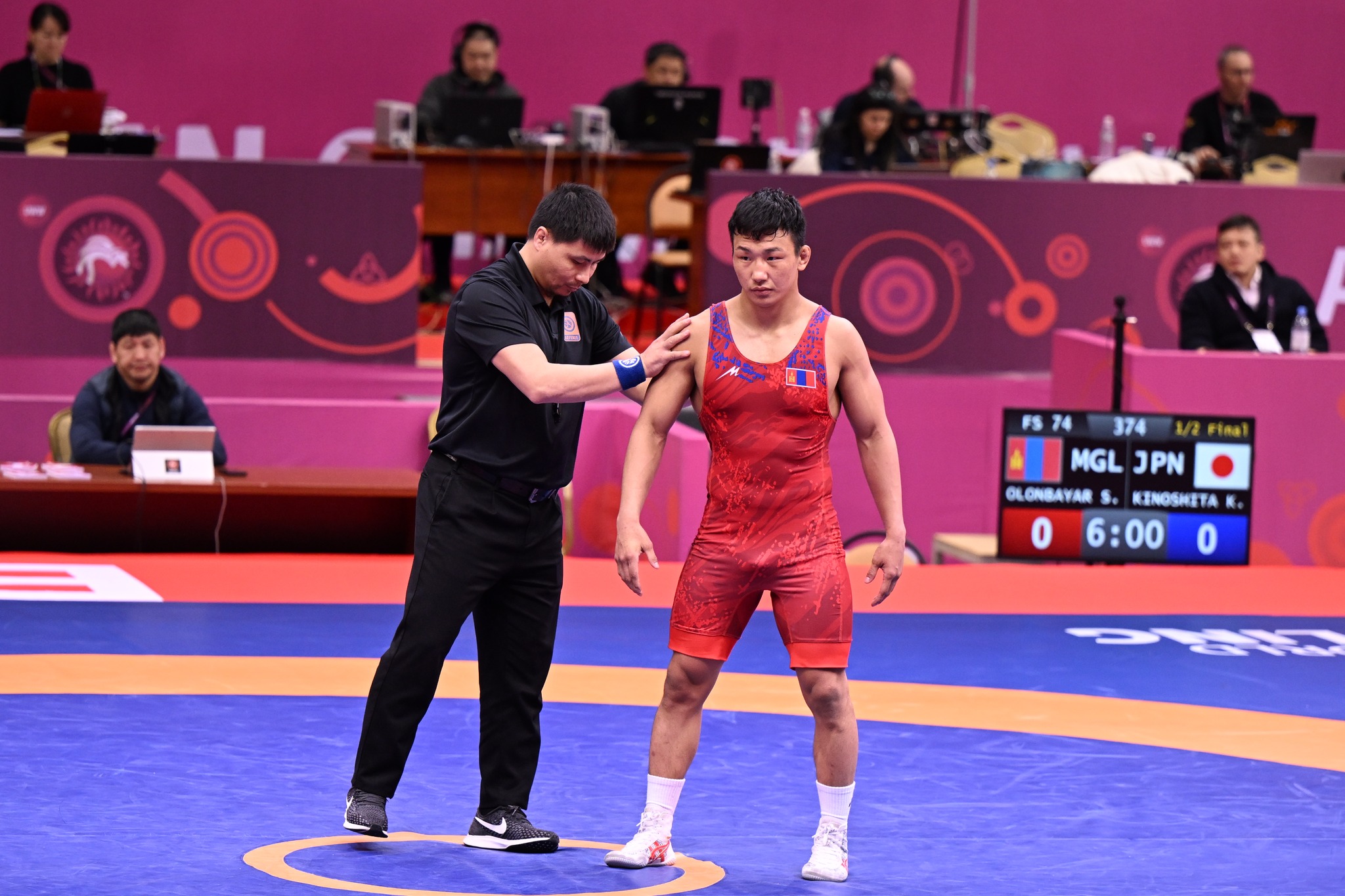 Эрэгтэйчүүдийн 74 кг-ын жинд сүүлийн хоёр жилийн насанд хүрэгчдийн улсын аварга, “Алдар” спорт хорооны залуу тамирчин, спортын мастер Олонбаярын Сүлдхүү хүрэл медаль авлаа. Тивийн шилдгүүдтэй анх удаа нүүр тулсан 22 настай түүний хувьд хүрэл медалийн төлөөх барилдаанд өнгөрсөн жилийн ААШТ-д 79 кг-ын жинд Азийн аварга болж байсан БНСУ-ын Гон Бён Минтэй хүч үзсэн. О.Сүлдхүү өөрөөсөө 10 насаар ах Солонгос Улсын туршлагатай бөхтэй ямар ч хийгүй нягт барилдаан хийж 6:0-ээр ялсан юм.