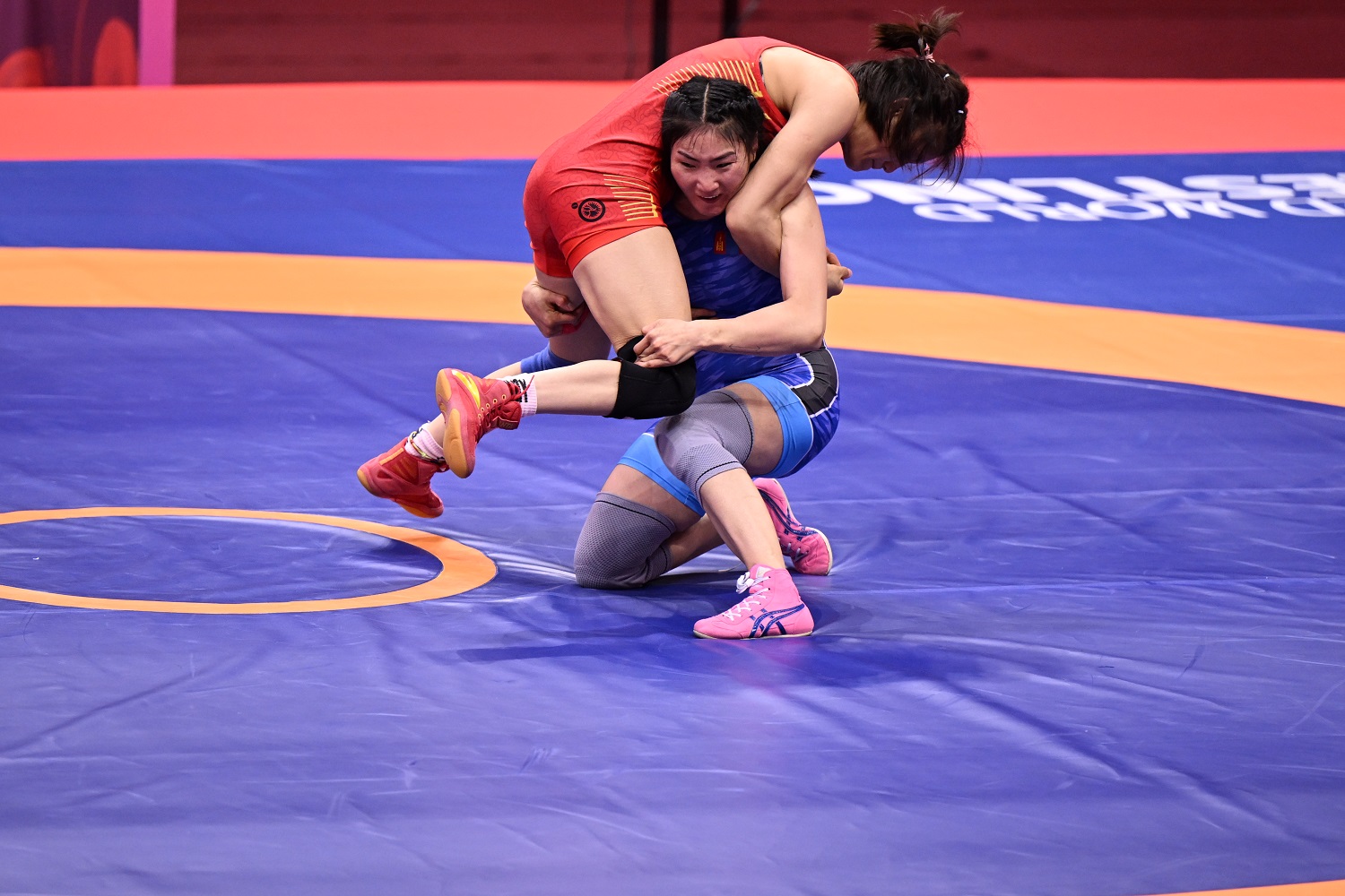 Азийн АШТ-ий мөнгө, хүрэл медальт ОУХМ Хүрэлхүүгийн Болортуяа 59 кг-ын жинд тун хүнд сугалаа татсан. Тэрбээр хэсгийн эхний барилдаанаа 2021 оны ДАШТ-ий хүрэл медальт Энэтхэгийн Саритатад ялагдав. Манай бөх хоёрдугаар тойрогт 2019 оны залуучуудын Азийн аваргын хүрэл медальт БНХАУ-ын Жуомалагад 6:4-өөр дийлдэж хэсгээсээ гарах боломжгүй болсон.