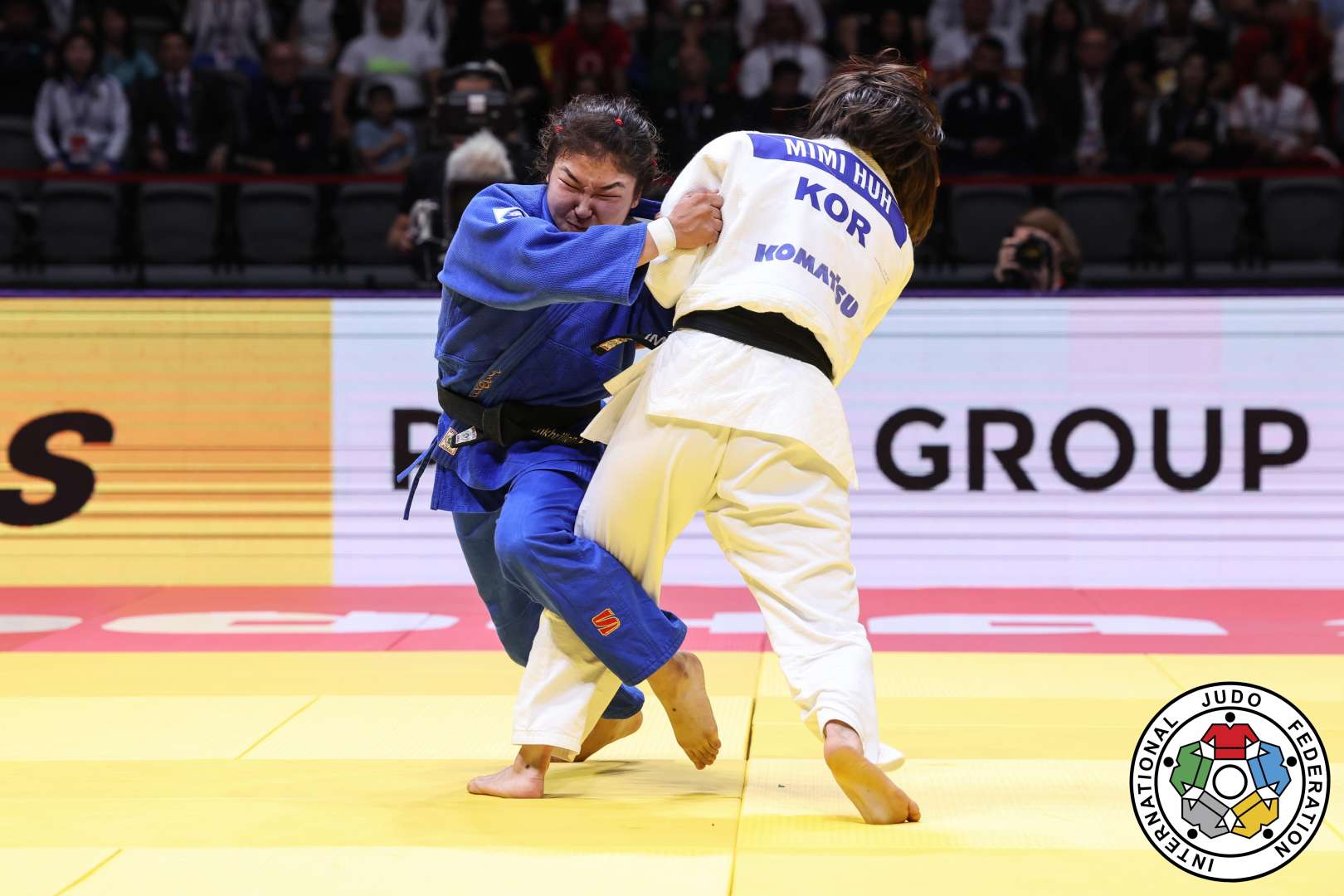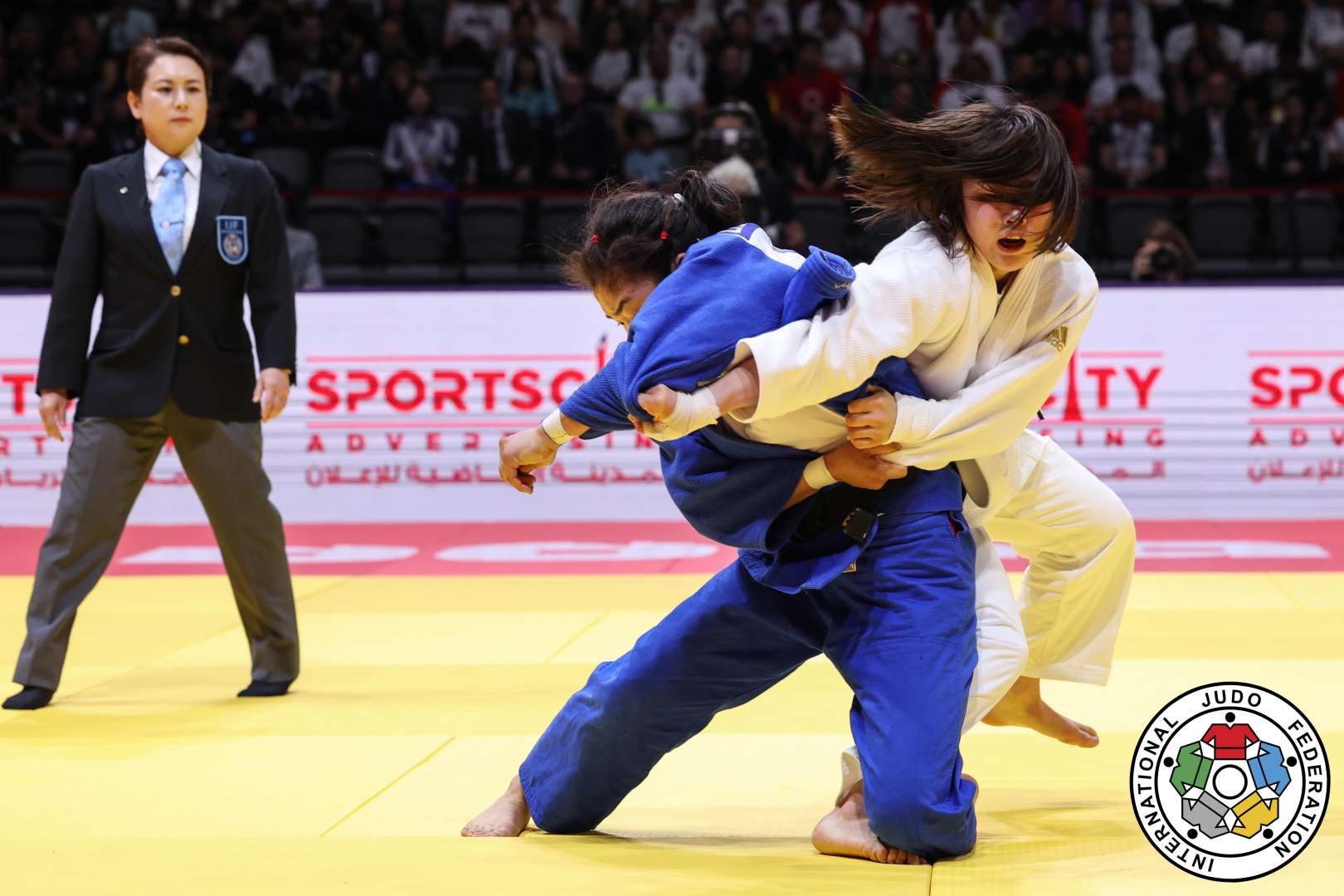 Л.Энхрийлэн үнэхээр “Эрэмгий дайчин”, өөртөө итгэлтэй барилдаж байлаа. Тийм учраас тэр хичээл, зүтгэлийнхээ үр дүнг хүртэж дэлхийн аваргын хос медальтан боллоо. Тэрбээр энэ удаагийн ДАШТ-ий “D” хэсгийн эхний тойргийн барилдаанд гоц мөргөн ялалт авсан. Хоёрдугаар тойрогт Шинэ Зеландын Куона Кристиг, гуравдугаар тойргийн барилдаанд Израилийн хүчтэй өрсөлдөгч Европ тивийн аварга Нелсон Леви Тимнаг ялж шигшээ наймд үлдсэн. Дөрөвний нэгд үлдэх шигшээ барилдаан буюу “D” хэсгийн аваргын төлөө, дэлхийн аварга, олимпын хүрэл медальт Канадын бөх Жессика Климкаитыг буулган авсан. Харин дөрөвний нэг шигшээ барилдаанд дэлхийн хошой аварга Канадын тамирчин Криста Дегуичид хожигдож, хүрэл медалийн төлөө барилдах эрхтэй үлдсэн юм. Хүрэл медалийн төлөө Өмнөд Солонгосын Хүх Мимитэй таарч ялан, дэлхийн хос медальтан болов. Өнгөрсөн 2022 оны ДАШТ-ээс Л.Энхрийлэн хүрэл медаль хүртэхдээ дэлхийн аварга Украины Дарья Билодид, дэлхийн аварга Канадын бөх Криста Дегуичи, гранд слам, гран при тэмцээний аварга Өмнөд Солонгосын Хүх Мими нарыг дараалан ялж бөмбөрцөгт нэрээ данслан дэлхийн аваргын хүрэл медальтан болж байсан билээ.