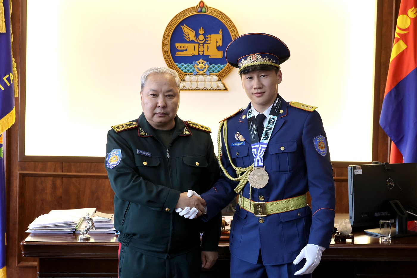 Боксын насанд хүрэгчдийн дэлхийн аварга шалгаруулах тэмцээний 67 кг-ыг жинд хүрэл медаль хүртсэн ОБЕГ-ын харьяа “Аврагч” биеийн тамир техник спортын хорооны тамирчин, ОУХМ Б.Мишээлтийг ОБЕГ-ын дарга, хошууч генерал Г.Ариунбуян хүлээн авч уулзан, хүндэтгэл үзүүллээ.