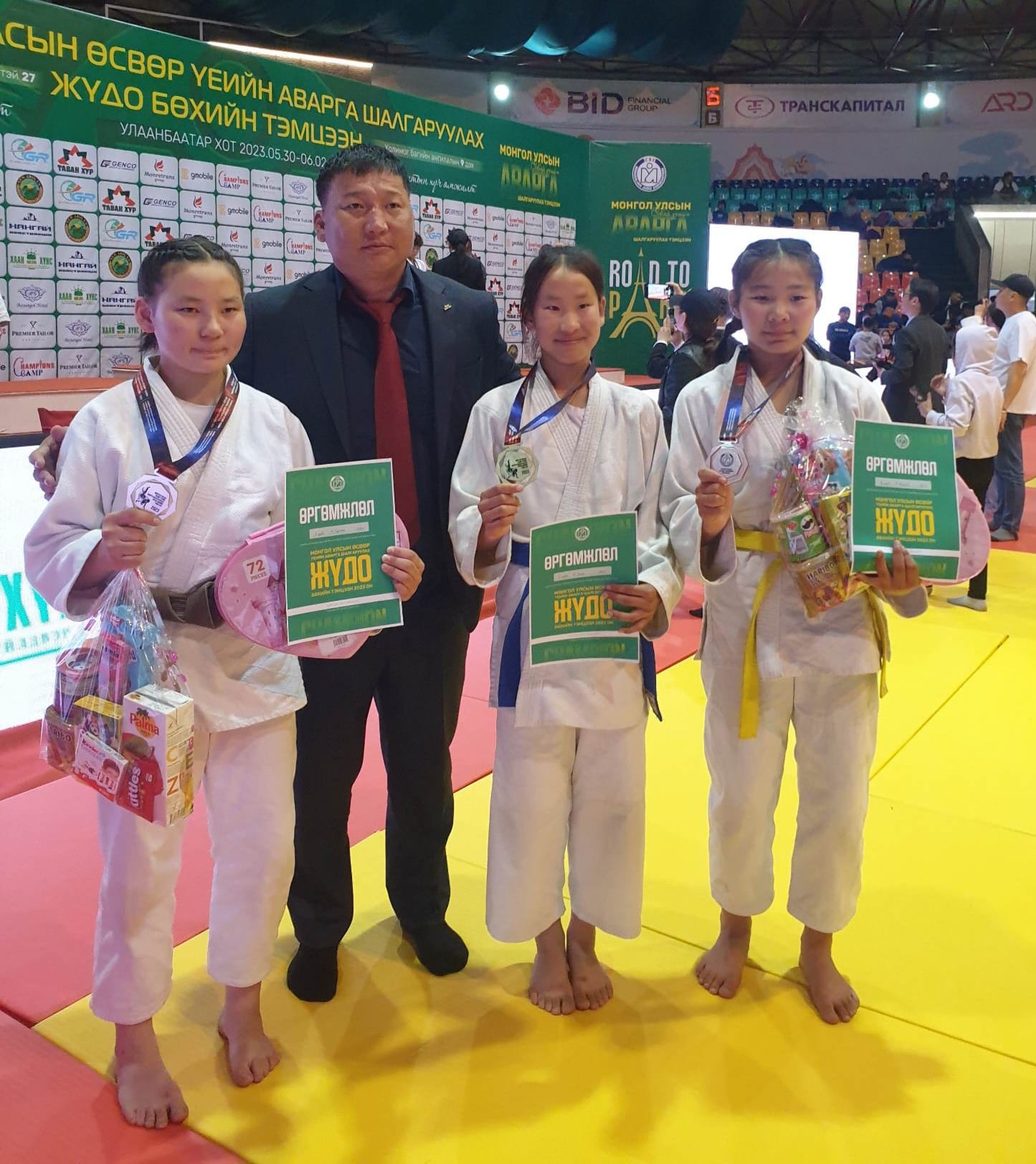 Дунд насны ангиллын охидын 40 кг-ын жинд Дашбалбар сумын “Цагаан -Арслан” клубийн тамирчин Б.Уянга алтан медаль, 52 кг-ын жинд Чойбалсан сумын “Маршал” клубийн тамирчин Э.Содтуяа мөнгөн медаль, М.Анударь хүрэл медаль хүртсэн.