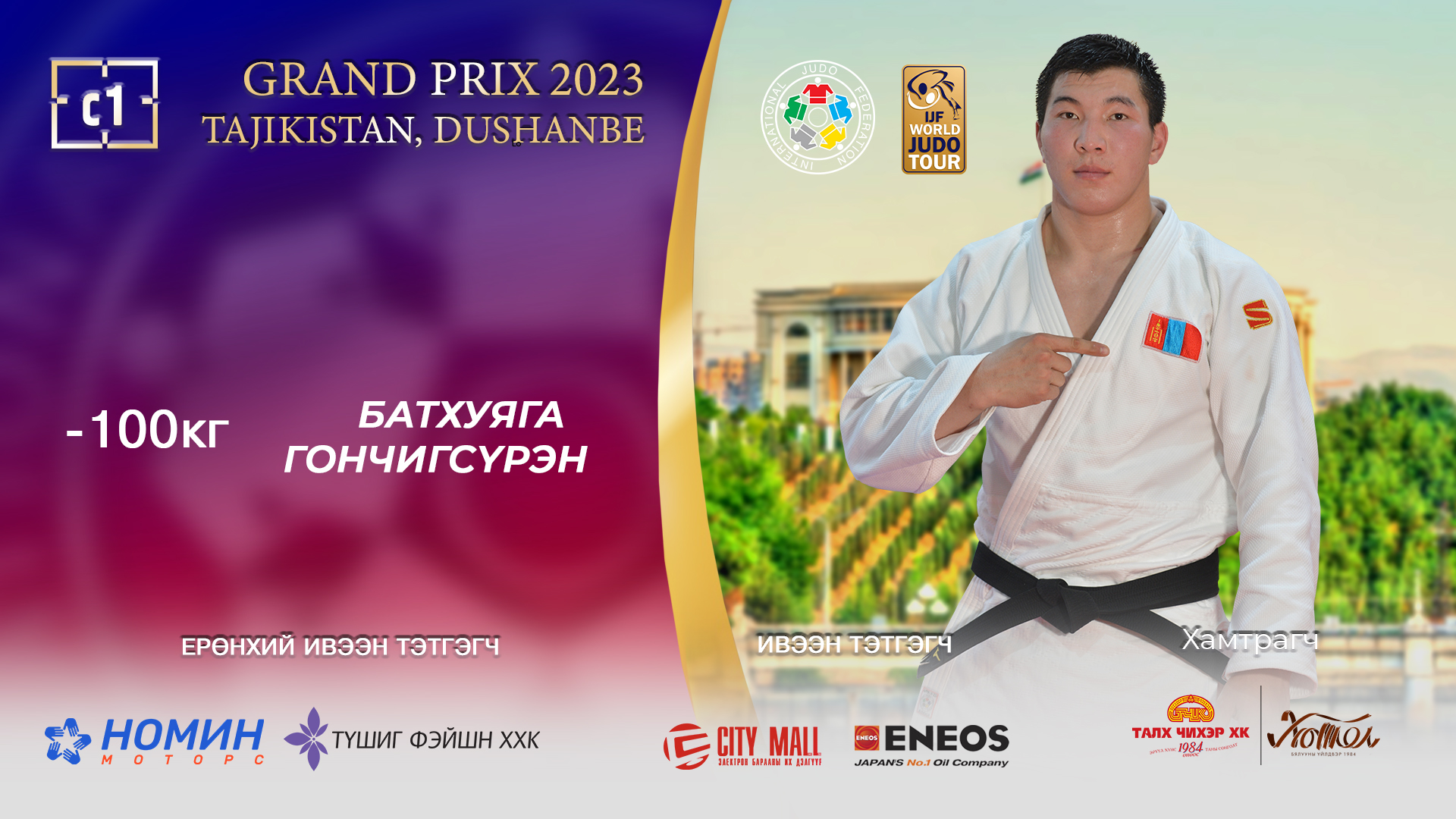 Тажикстан Улсын Душанбе хотод жүдо бөхийн гран при тэмцээн гурав дахь өдрөө үргэлжилж байна. Өнөөдөр эрэгтэйчүүдийн -100 кг-ын жинд ОУХМ Батхуягийн Гончигсүрэн жингийнхээ бөхчүүдийн тэргүүлэн барилдсан. Тэрбээр “А” хэсгийн нэгдүгээр тойрогт гоц мөргөн хийлж, ялалт авсан байгаа. Хоёрдугаар тойргийн барилдаанд Казахстаны Bekarys Saduakas-г яллаа. Одоо “А” хэсгийн аваргын төлөө Орос, Германы бөхчүүдийн аль ялсантай барилдана.