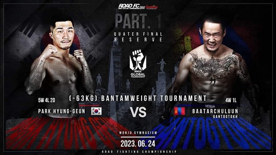 Зургадугаар сарын 24-ний өдөр -63 kg-ын жинд “BANTAMWEIGHT Road FC” холбоонд “Garuda mma” тамирчин кикбоксын Зүүн Азийн аварга Баатарчулууны Гантогтох, Солонгос Улсын “SSADI MMA” Клубийн тамирчин Пак Хён Гынь-тай тулалдах юм. Мөн өдөр -70 кг-ын жинд “Road FC” холбоонд М.Нандин-Эрдэнэ, Бразилийн тамирчин Филип Жесүс-тэй тулалдана.