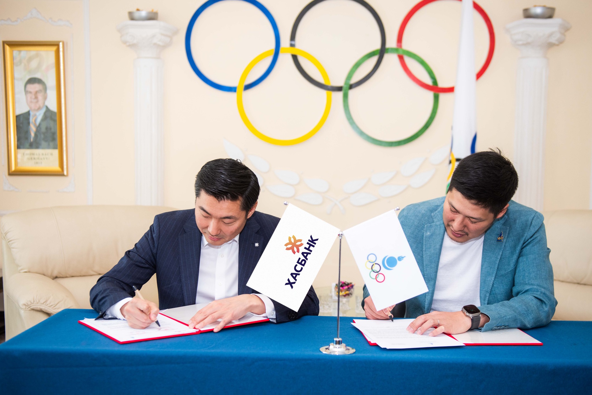 МҮОХ, ХасБанк хооронд “Алтан түнш”-ийн гэрээ байгуулах ёслол өнөөдөр “Олимпик хаус”-т боллоо. Гэрээнд МҮОХ-ны ерөнхийлөгч Б.Баттүшиг, ХасБанк-ны гүйцэтгэх захирал Г.Цэвэгжав нар гарын үсэг зурав. Гэрээний хүрээнд ХасБанк нь МҮОХ-ны таван цагариг бүхий логог ашиглах эрхтэй болсноос гадна МҮОХ-ноос зохион байгуулж буй арга хэмжээ, тив, олимпын наадамд хамтран ажиллах боломж нээгдэж байгаа юм. ХасБанк нь байгуулагдсан цагаасаа хойш спорт, тэр дундаа багийн спортыг тууштай дэмжиж ирсэн билээ. Хамтын ажиллагааны гэрээ 2024 оныг дуустал үргэлжилнэ.