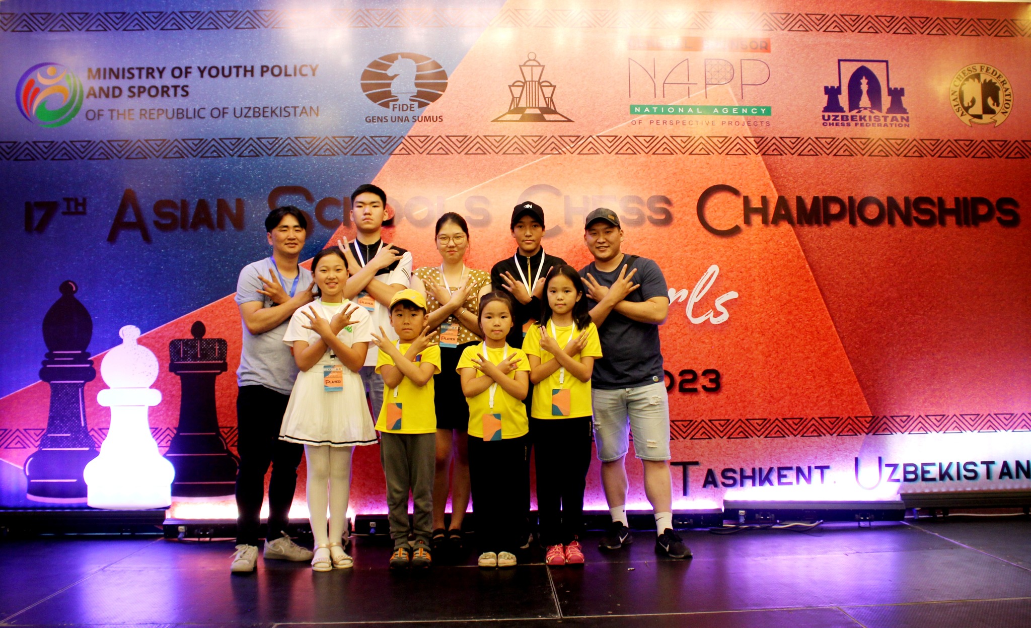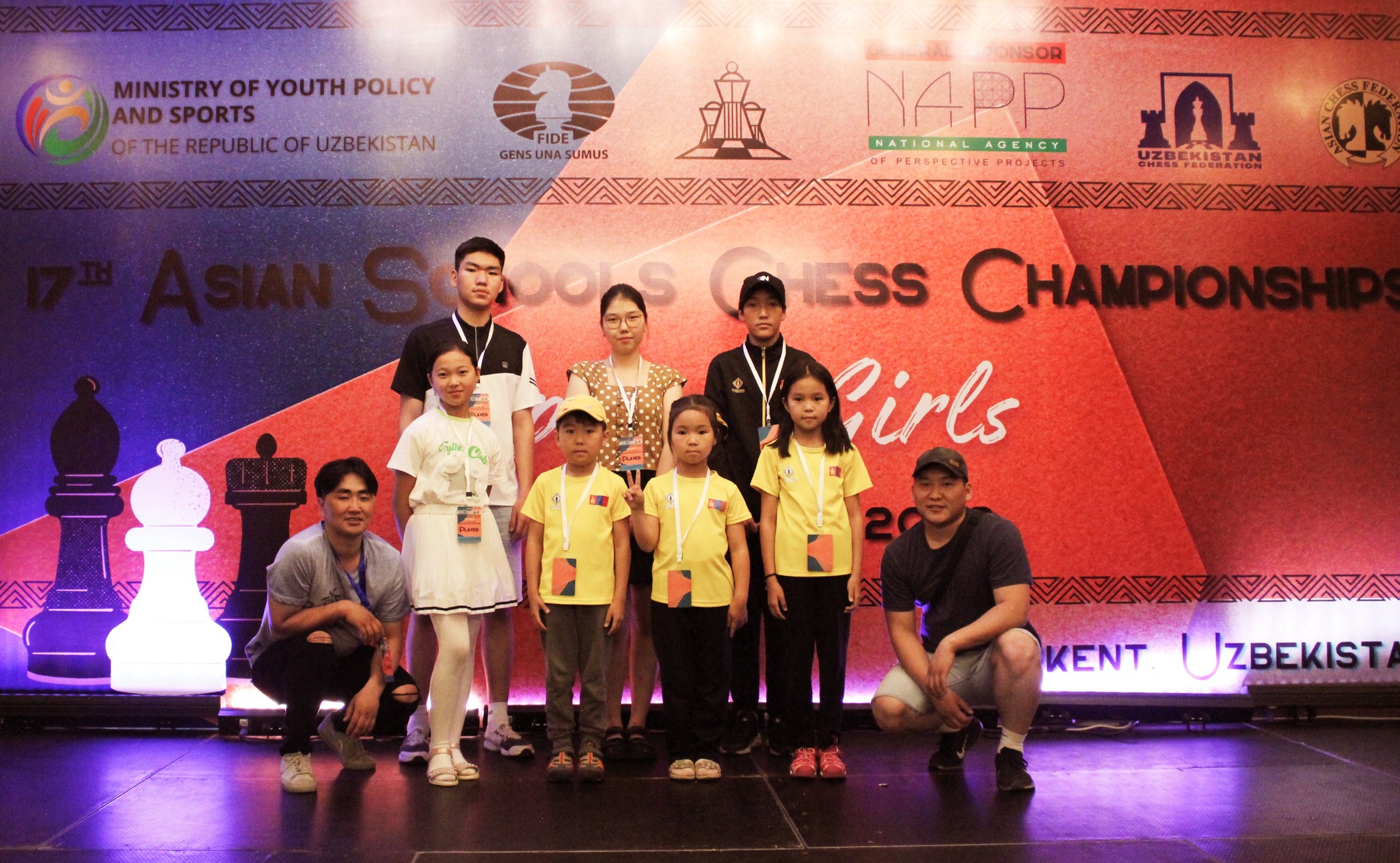 Узбекистан Улсын Ташкент хотноо 2023 оны сурагчдын Ази тивийн аварга шалгаруулах тэмцээн долдугаар сарын 14-22-ны өдрүүдэд зохион байгуулагдаж байна. Манай улсаас дэлхийн шатрын холбооны мастер "ABC chess академи”-ийн дасгалжуулагч Б.Анугаар ахлуулсан 20 тамирчин, дөрвөн дасгалжуулагч Ташкентийн дэвжээнд тулалдаж байна. Өчигдөр явагдсан рапид төрөлд манайхан уламжлал ёсоороо сайн тоглож дөрвөн алт, нэг мөнгөн медалийн болзол хангажээ.