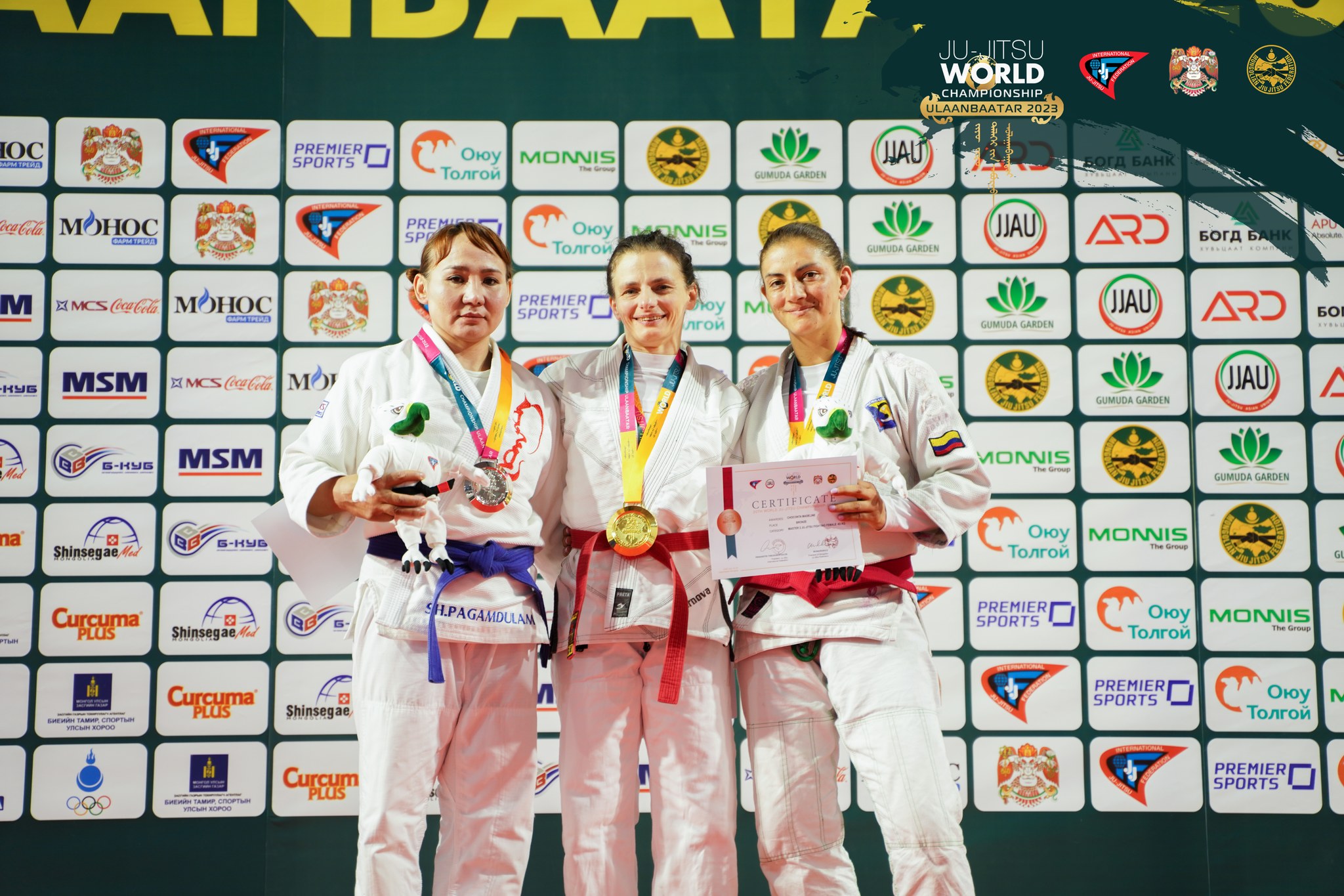 Жюү жицү бөхийн “Улаанбаатар-2023” дэлхийн аварга шалгаруулах тэмцээн үргэлжилж байна. Өчигдөр болсон “Мастерс-2” Fighting ангиллын эмэгтэйчүүдийн 63 кг-ын жинд Андреа Пфлека (Герман) алтан медаль, Шархүүгийн Пагмадулам (Монгол) мөнгөн медаль, Маделине Чочонта (Колумб) хүрэл медаль авлаа.