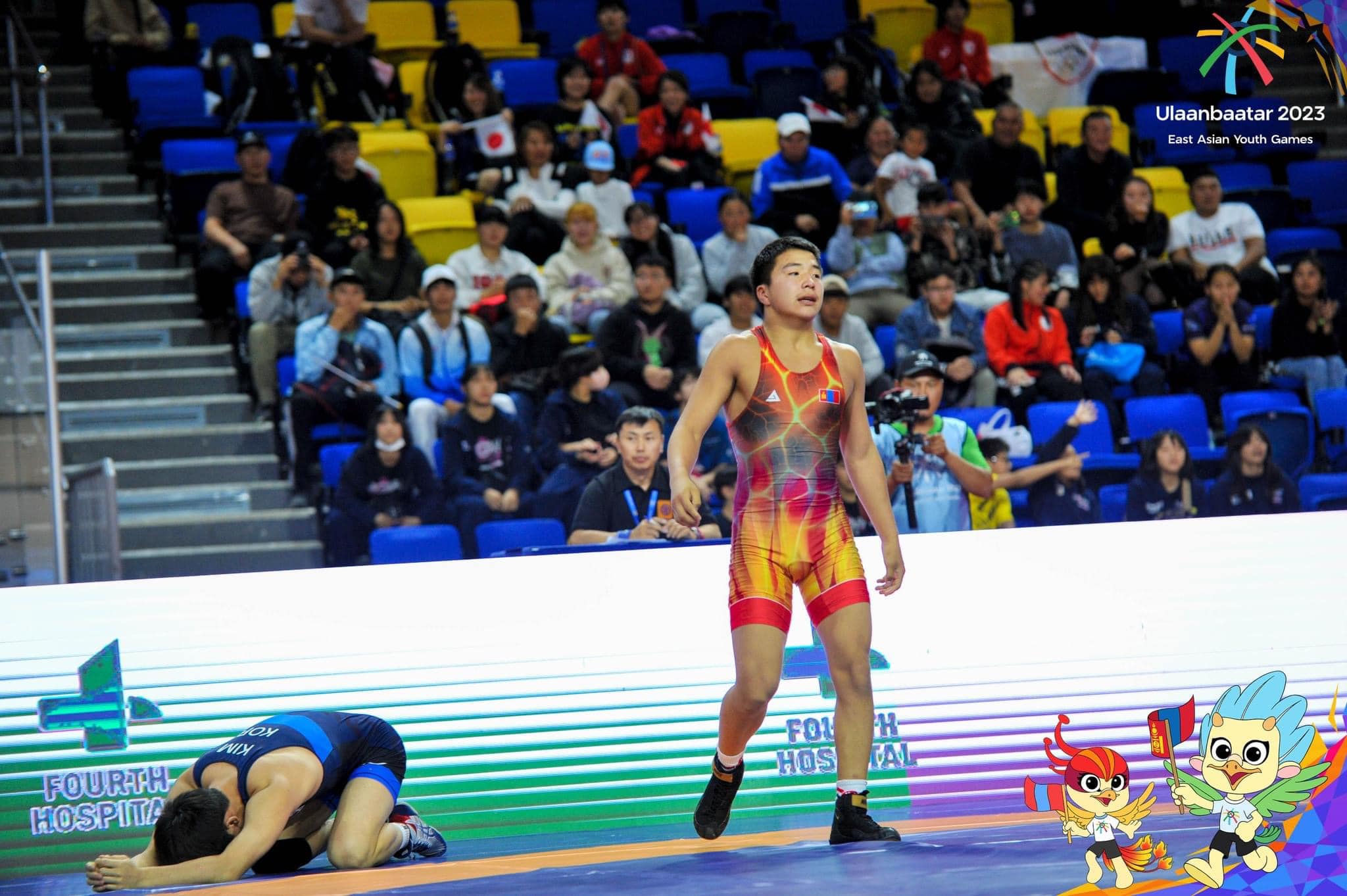 “Улаанбаатар-2023” Зүүн Азийн залуучуудын наадмын чөлөөт бөхийн тэмцээний өнөөдрийн сүүлийн барилдааныг Монгол Улсын тамирчин Алтангэрэлийн Анх-Эрдэнэ хийлээ. Тэрбээр БНСУ-ын тамирчин Кимтэй мөнгөн медалийн төлөө барилдаж, оноогоор цэвэр ялснаар мөнгөн медалийн болзол хангалаа. Өнөөдөр манай чөлөөтийнхөн хоёр мөнгө, хоёр хүрэл медаль аваад байна.