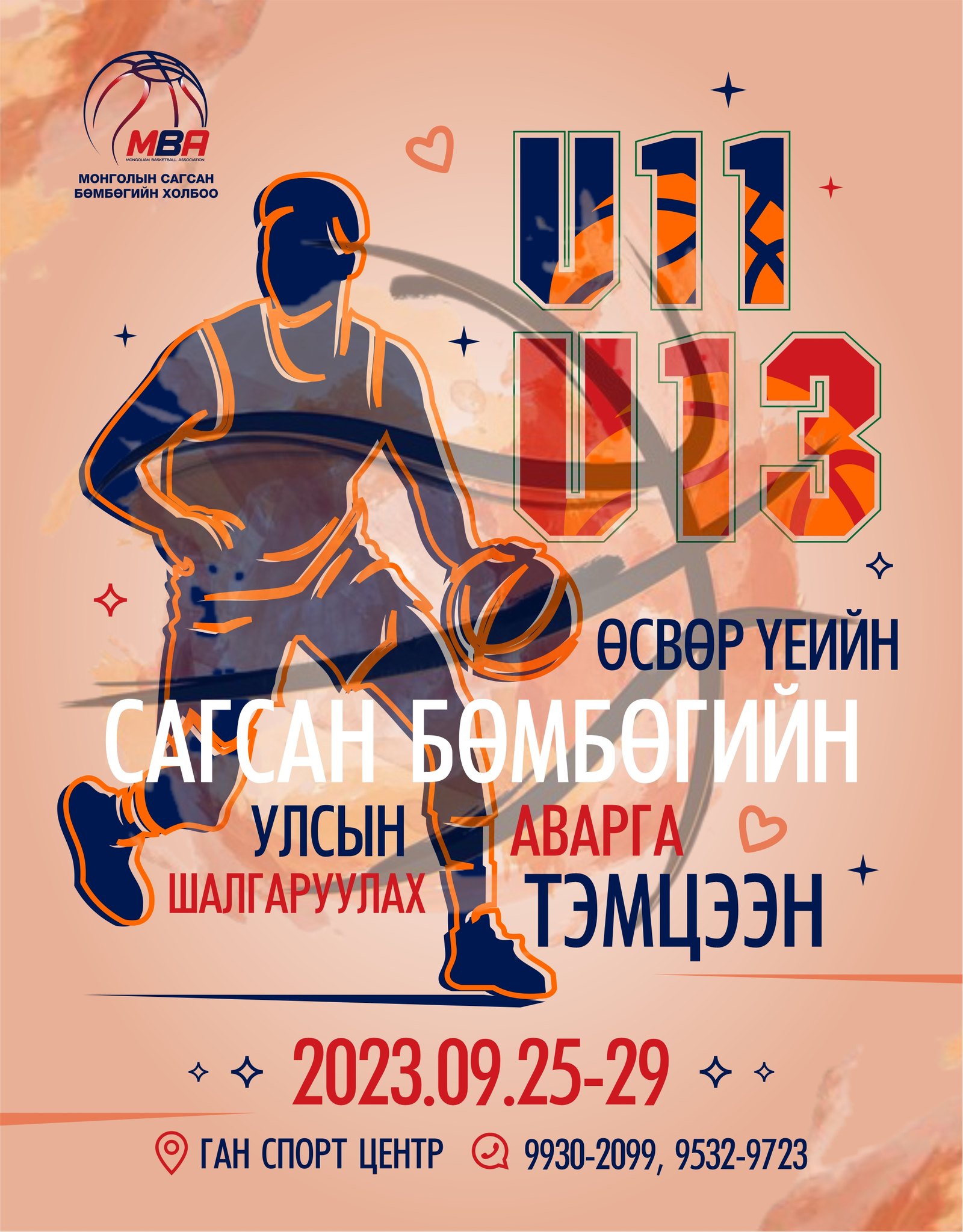 Монгол Улсын сагсан бөмбөгийн "U11”, “U13" насны өсвөр үеийн улсын аварга шалгаруулах тэмцээн 2023 оны есдүгээр сарын 28-29-ны өдрүүдэд болно. Тус тэмцээнд 2012 оны нэгдүгээр сарын 1-ээс хойш төрсөн тамирчид оролцоно. Харин “U13" насны тэмцээнд 2010 оны нэгдүгээр сарын 1-ээс хойш төрсөн тамирчид оролцоно. Тэмцээний техникийн зөвөлгөөн 2023 оны есдүгээр сарын 22-ны баасан гарагт 18:00 цагт “Ган” спорт центер дээр болно.