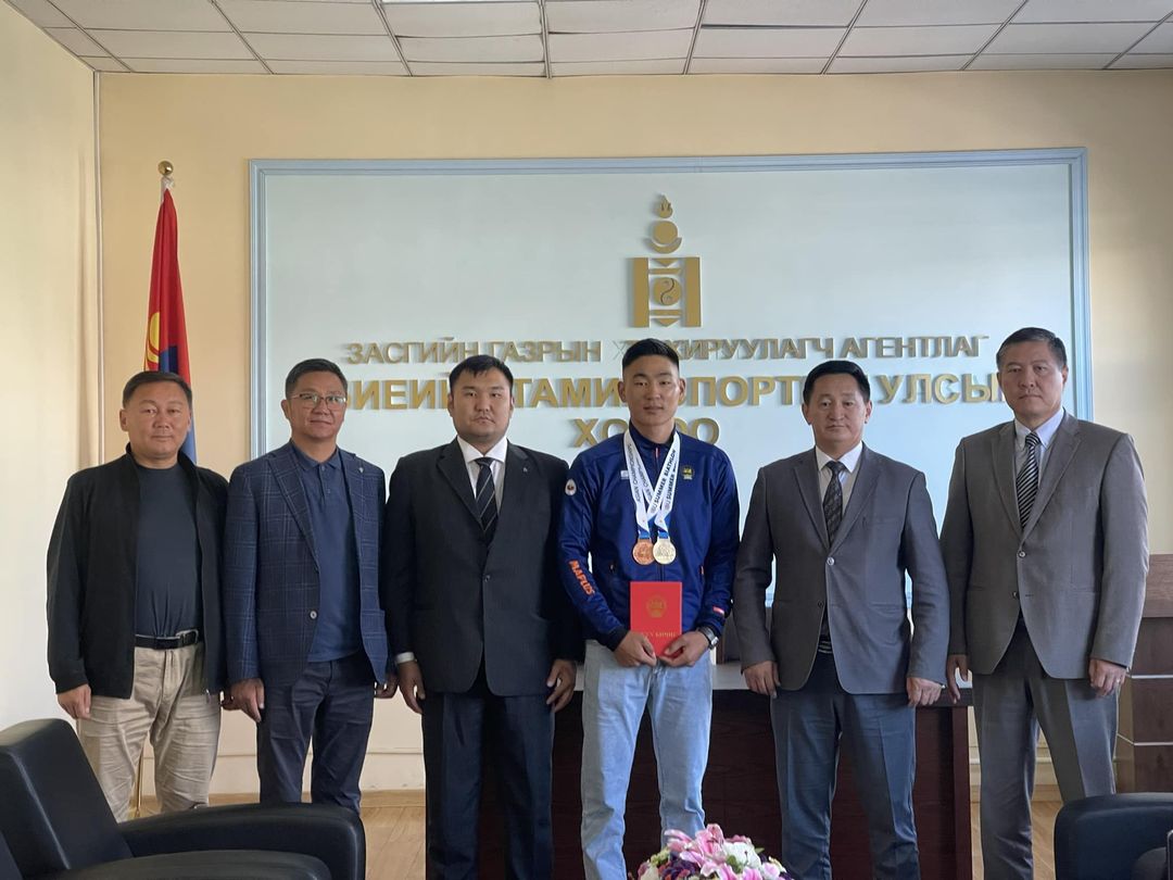 Тэрбээр Биеийн тамир, спортын улсын хорооны хүндэт жуух гардуулж амжилт хүсэж баяр хүргэлээ. БТСУХ-ны дарга О.Баттулга ОХУХ-ны Э.Энхсайханд цаашид оролцох тэмцээн уралдаан, бэлтгэл цугларалтдаа шамдаж Монгол Улсынхаа төрийн дууллыг олон удаа эгшиглүүлж спорт сонирхогчдоо баярлуулна гэдэгт итгэж найдаж байгаагаа илэрхийлээд цаашид олимпын эрхээ авч өндөр амжилт гаргахыг хүсэн ерөөлөө.