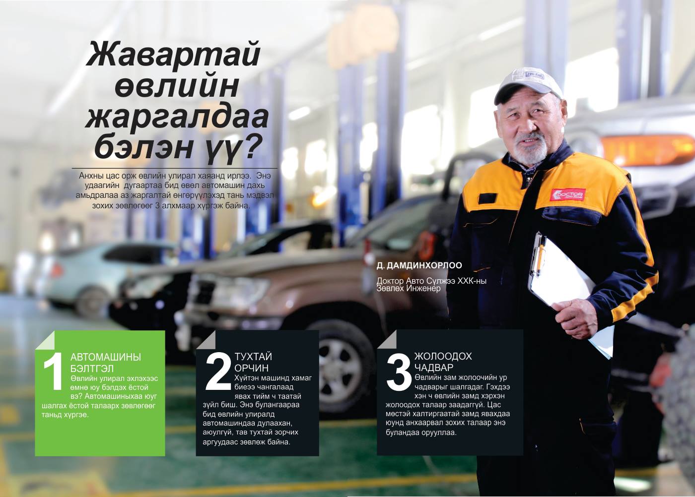 -Намайг дасгалжуулагч гэх нь арай ахадсан зүйл болох байх. Инженер, засварчин гэж хэлж болно. Манай хүүхдүүд надаас дутахгүй техникийн мэдлэгтэй. Өөрсдөө хамтран нийлж машинаа засдаг. Уралдааны өмнө Болдбаатарын машиныг түүний ах Дамдиндорж бид хоёр хамтарч бэлддэг юм.