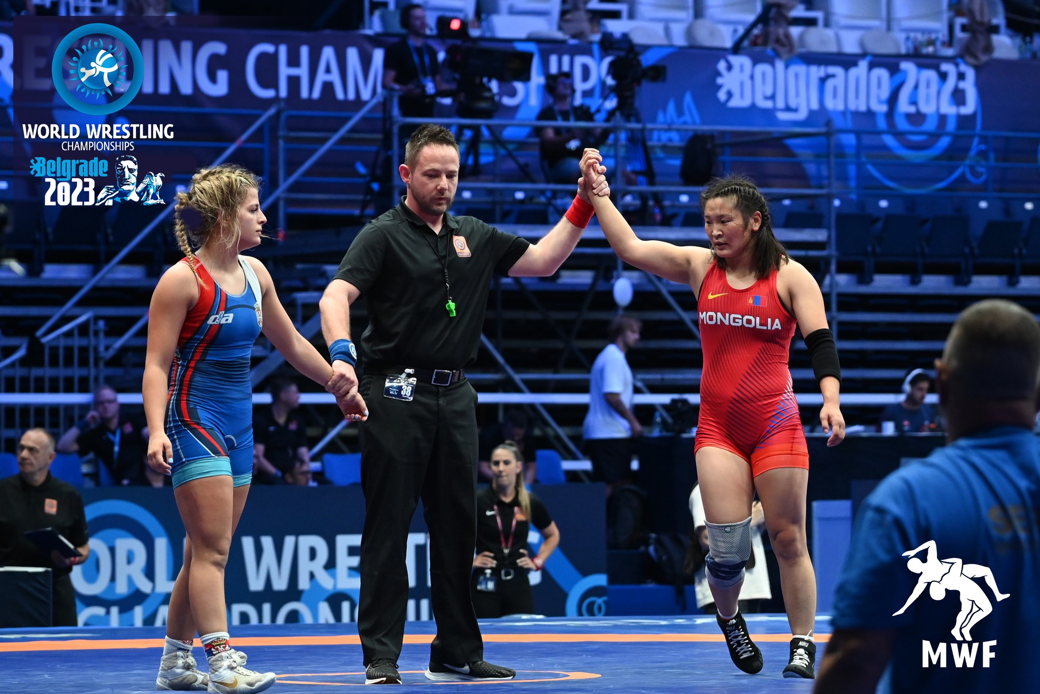 Белград. ДАШТ-ий 68 кг-д Энхсайханы Дэлгэрмаа эхний тойрогт гоц мөргөж, хоёрдугаар тойргийн барилдаанд Сербийн 18 настай бөх Эмилия Яковлевичийг 14:4 оноогоор яллаа. Гуравдугаар тойрогт Дэлгэрмаа Казахстаны ахмад бөх, олимп дэлхийн дөрвөн медальт Елена Шалыгинатай хүч үзнэ.