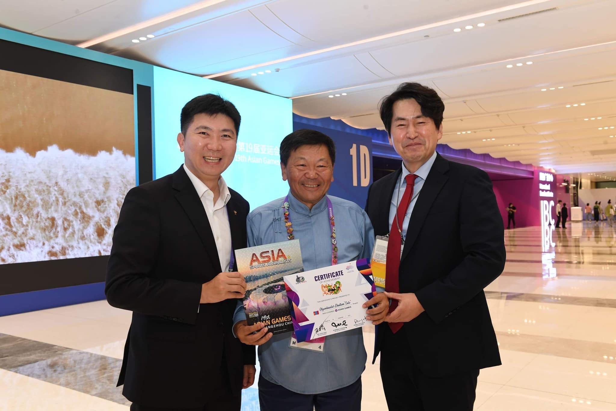 Азийн спортын сэтгүүлчдийн холбооноос таваас дээш удаа Азийн наадамд ажилласан спортын сэтгүүлч, гишүүддээ хүндэтгэл үзүүлж, батламж гардуулав. Энэ удаагийн Азийн наадмын үеэр энэхүү чухал хүндэтгэлийг Монгол Улсыг төлөөлж, дараах эрхмүүд хүртлээ. МҮОХ-ны ерөнхий нарийн бичгийн дарга асан, Монголын спортын сэтгүүлчдийн холбооны хүндэт ерөнхийлөгч Ж.Отгонцагаан (9 наадам), Монголын спортын сэтгүүлчдийн холбооны хүндэт ерөнхийлөгч Ч.Отгонбаатар ( 7 наадам), Монголын спортын сэтгүүлчдийн холбооны ерөнхийлөгч, Монголын триатлоны холбооны ерөнхий нарийн бичгийн дарга Б.Цагаанбаатар ( 5 наадам) сурвалжилсан байна.