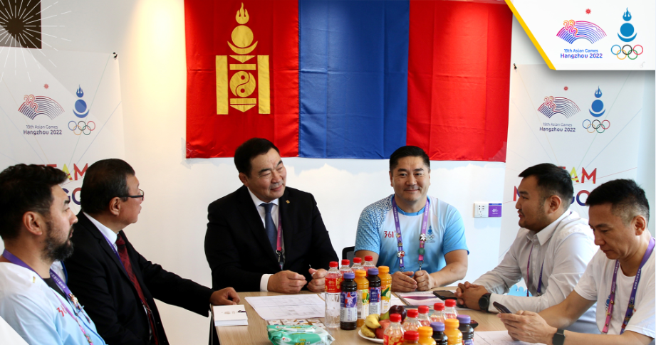 Монгол Улсын Засгийн газрын гишүүн, Монгол Улсын сайд, Олимп, нийтийн биеийн тамир, спортын Үндэсний хорооны дарга Б.Бат-Эрдэнэ “Ханжоу 2022” Азийн наадамд оролцож буй тамирчдын тосгонд хүрэлцэн ирж, баг тамирчдын байрлаж буй нөхцөл байдал, штабын үйл ажиллагаатай танилцлаа.