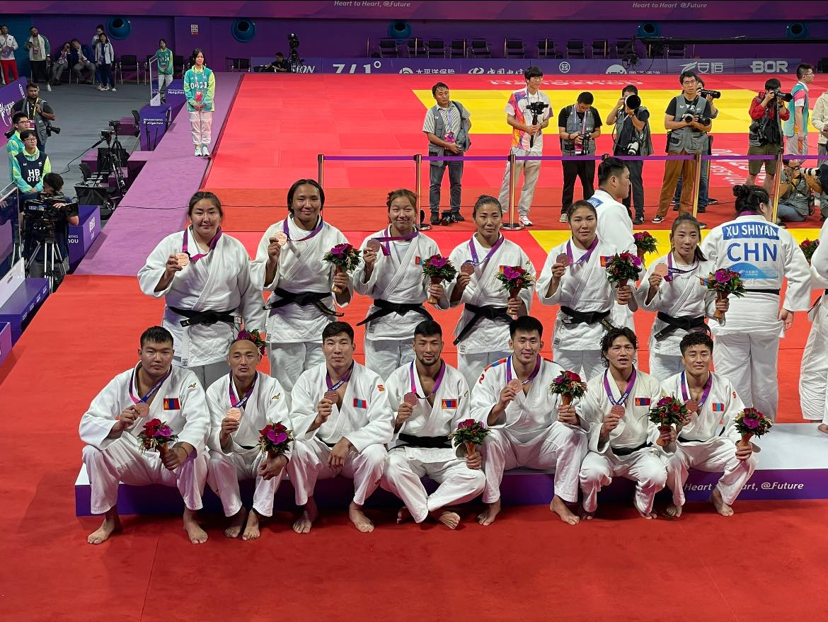 “Ханжоу 2022” Азийн XIX наадмын жүдо бөхийн холимог багийн тэмцээн боллоо. Монгол Улсын жүдо бөхийн шигшээ баг тамирчид багийн барилдаанд Өмнөд Солонгос Улсын багийг 4:1-ийн харьцаатай ялж хүрэл медаль хүртлээ.