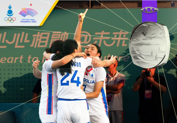 “Ханжоу 2022” Азийн XIX наадмын багийн спортын анхны мөнгөн медалийг 3х3-ын сагсан бөмбөгийн эмэгтэй шигшээ баг эх орондоо авчирлаа. Манай баг Хятадын багт 21:12 хожигдож мөнгөн медаль хүртэв.