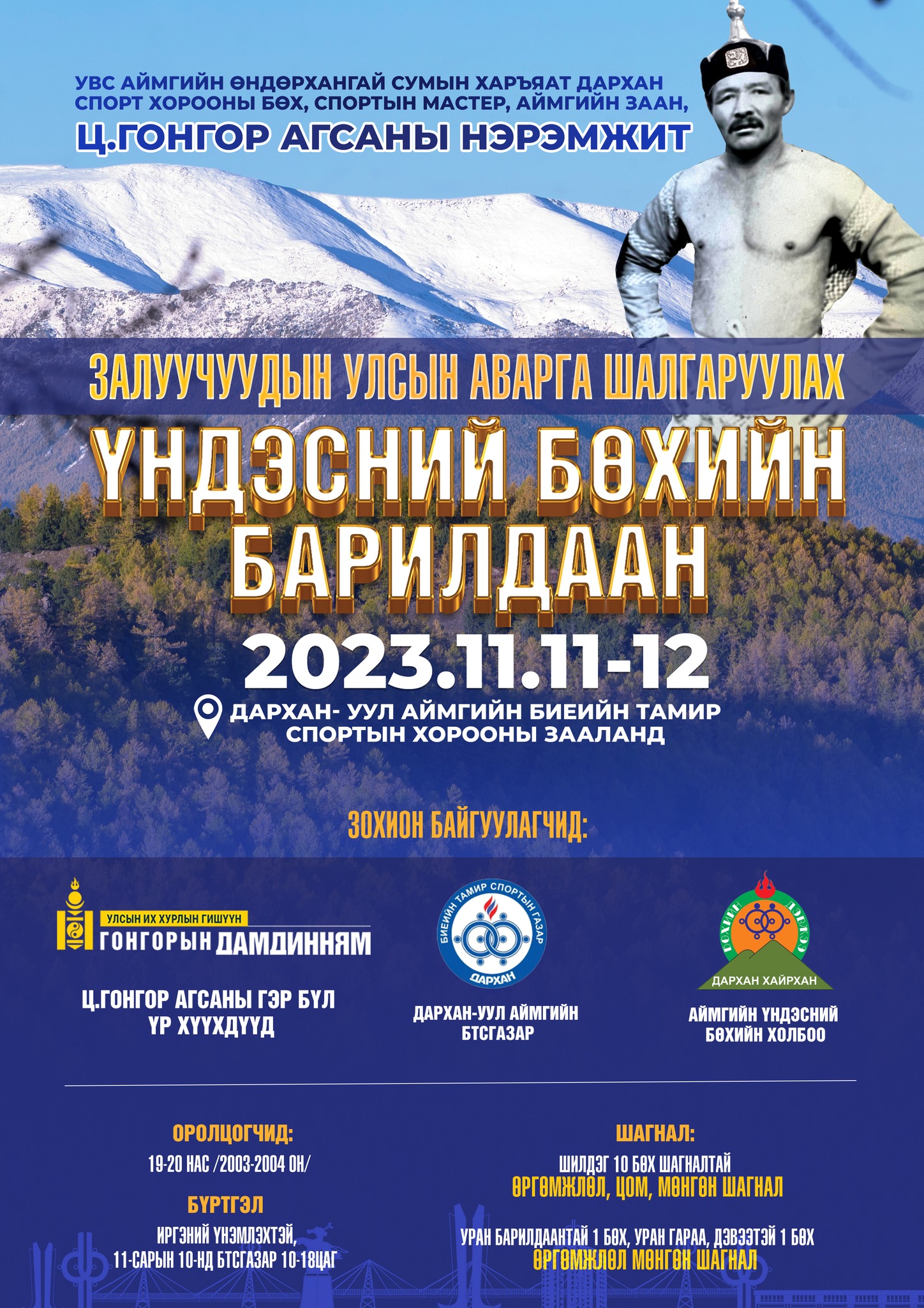 Дархан-Уул аймагт спортын мастер, аймгийн заан Ц.Гонгор агсны нэрэмжит үндэсний бөхийн залуучуудын улсын аварга шалгаруулах тэмцээн болно. Энэ удаагийн барилдаанд ирэх долоо хоногийн амралтын өдрүүд буюу арваннэгдүгээр сарын 10-12-ны өдрүүдэд болох юм байна.