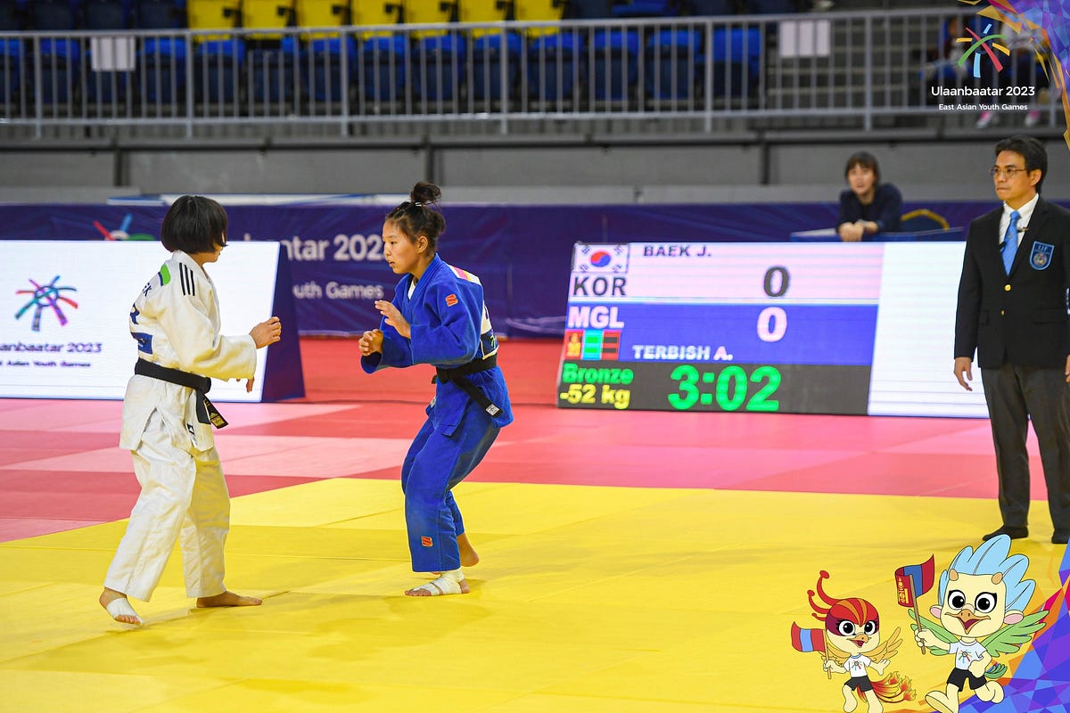 Манай бөхчүүдээс охидын 52 кг-ын жинд 2022 оны өсвөрийн Ази тивийн аваргын хүрэл медальт, 2023 онд олон улсын цомын тэмцээнүүдээс зургаан алт, нэг мөнгөн медальтай Тэрбишийн Ариунзаяа медалийн төлөө шалгарч үлдсэн юм.