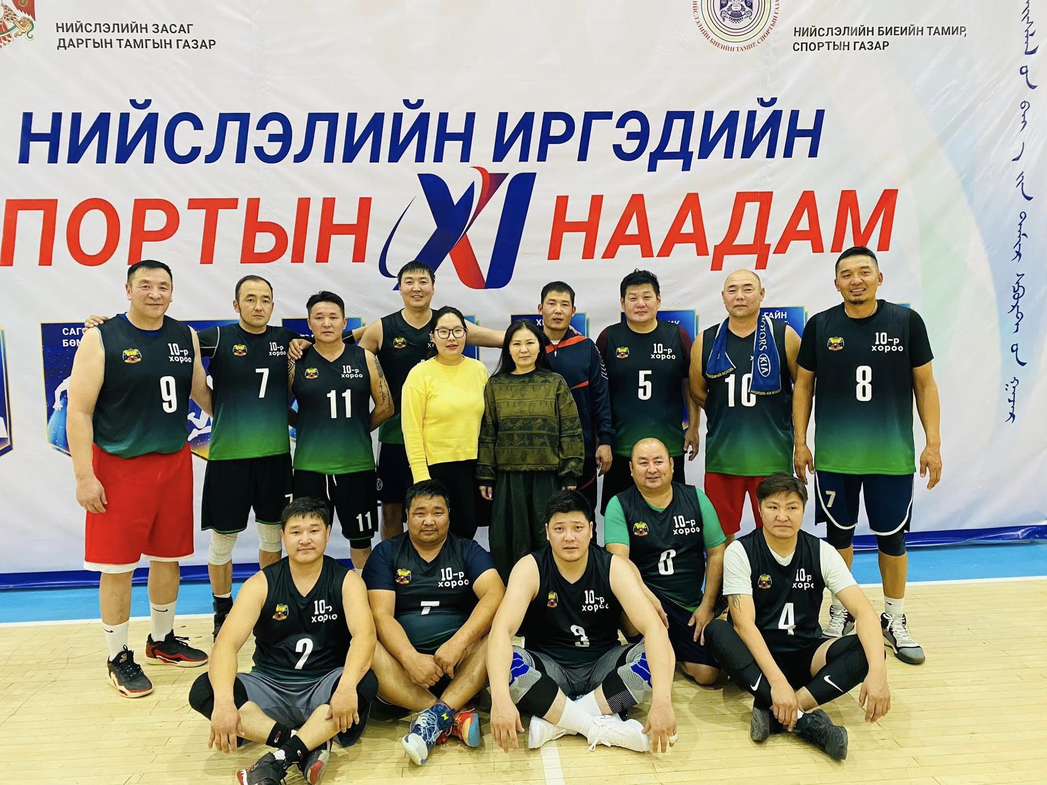 Нийслэлийн иргэдийн спортын XI наадмын сагсан бөмбөгийн шигшээ тэмцээн боллоо. Тус тэмцээн энэ сарын 22-ны өдөр Баянгол дүүргийн Биеийн тамир, спорт хорооны зааланд зохион байгуулагдлаа. Энэ удаагийн тэмцээний сагсан бөмбөгийн төрөлд Б.Алтантуяа Засаг даргатай, спортын мастер Т.Цэнд дасгалжуулагчтай, Ш.Азжаргал ахлагчтай ХУД-ийн 10-р хорооны эрэгтэй баг тамирчид тэргүүн байр эзэллээ.