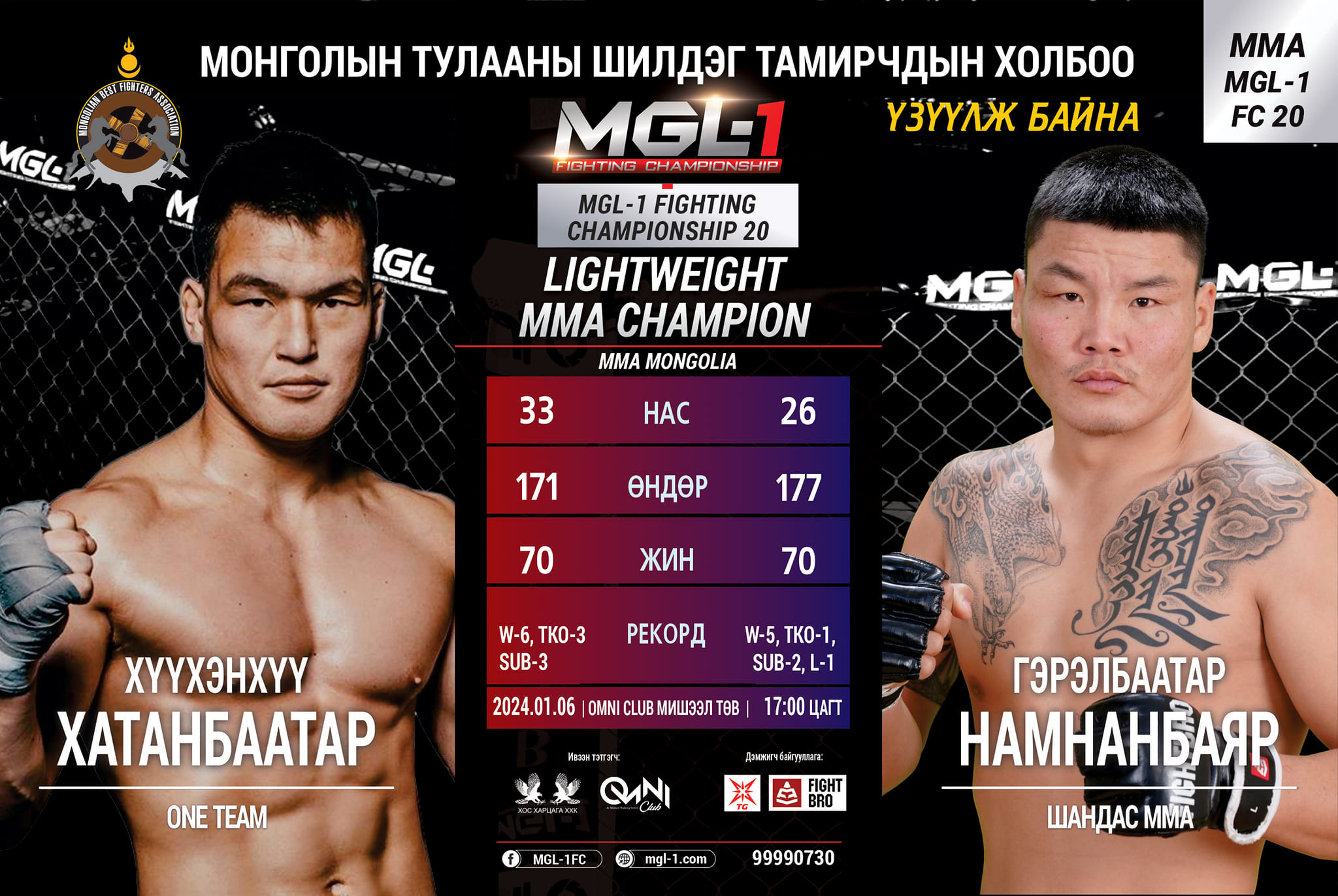 Монголын холимог тулааны 2024 оны 70 кг жингийн бүсний аваргын төлөөх тулааныг 2024 оны нэгдүгээр сарын 6-ны өдөр болно. Оргил тулааныг 2009 оны “MGL-1”, “FC” 1-р тулааны шилдэг наймд шалгарч байсан Дундговь аймгийн Гурвансайхан суманд төрсөн. АНУ-д холимог тулааны төрлөөр тасралгүй зургаан ялалт байгуулсан “Тэйд констракшион”, “One-team” клубийн тамирчин “Катана” хочит Х. Хатанбаатар хийнэ.