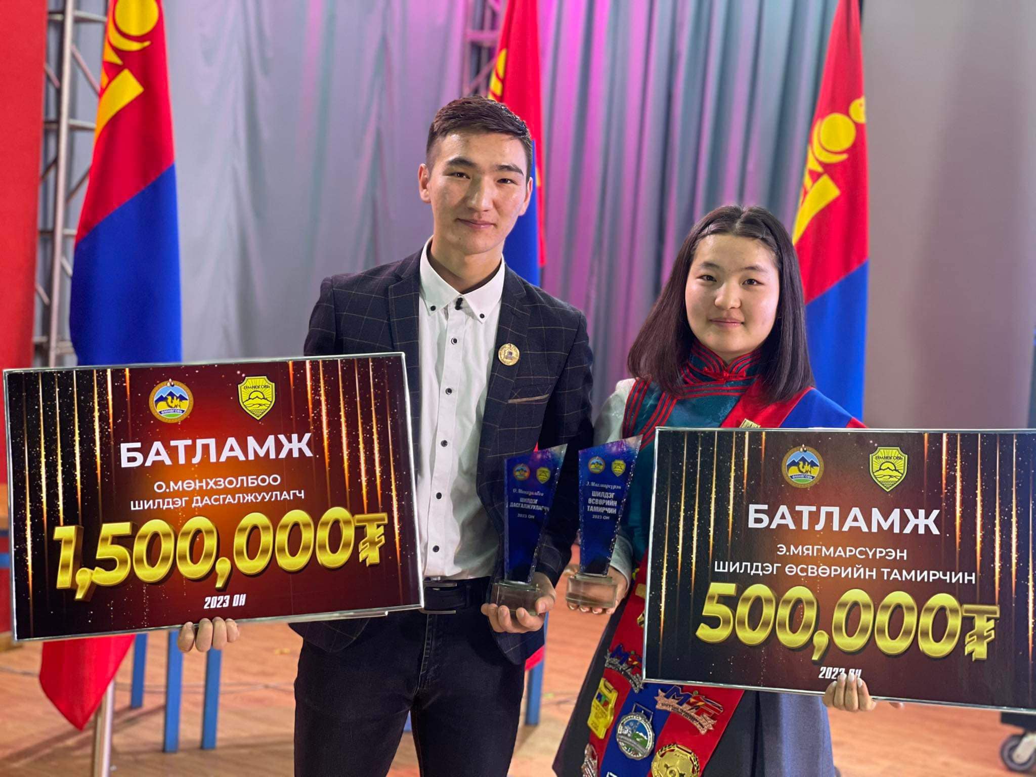 Мөн түүнчлэн тус ёслолын үеэр "Насанд хүрэгчдийн УАШТ-2023" тэмцээнд амжилттай оролцож аймгийнхаа нэрийг өндөрт өргөж медаль хүртсэн тамирчдад батламж, мөнгөн шагналыг гардуулсан байна.