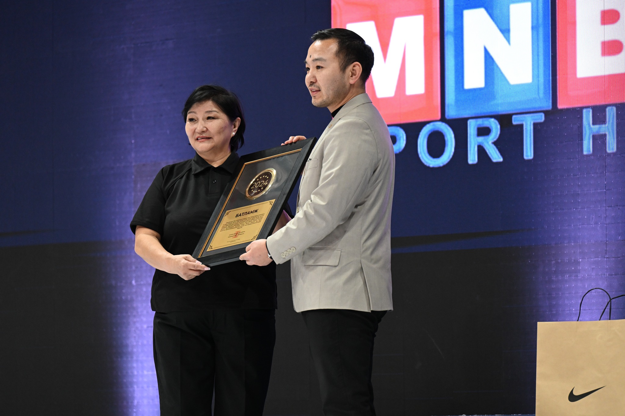 Тухайлбал, өөрийн шавь Э.Бэхбаярын барилдаж байсан 57 кг-ын аварга бөх Б.Мөнх-Эрдэнэ, өөрийн хань А.Энхээгийн барилдаж байсан 65 кг-ын аварга Ц.Цогбадрах, эмэгтэйчүүдийн 53 кг-ын аварга Б.Хулан нарт мөнгөн шагнал гардуулсан юм.