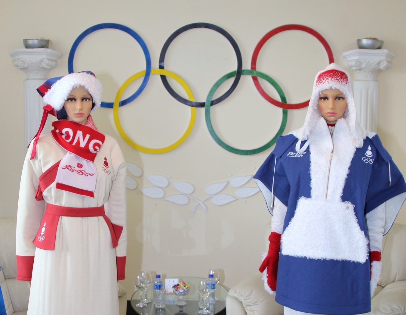 Монголын багийн тугч уулын цанын тамирчин Мянгайбаатарын Манлайжав болон биатлонч Дэмүүлийн Нямсүрэн нар Монгол үндэсний дээлээр гангарах бол багийн бусад гишүүд үндэсний хэв маягийг шингээсэн кашмер бүтээгдэхүүнээр ижилсэнэ.Ази тивд анх удаа зохион байгуулагдаж байгаа Залуучуудын өвлийн олимпын наадамд оролцох баг тамирчиддаа өндрөөс өндөр амжилтыг хүсэн ерөөв.