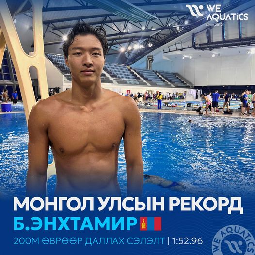 Катар Улсын Доха хотод усан сэлэлтийн дэлхийн аварга шалгаруулах тэмцээнд үргэлжилж байна. ОУХМ Б.Энхтамир 200 м-ийн өврөөр даллах сэлэлтэд 1:52.96 цагийн амжилтыг үзүүлж, 50 м-ийн бассейны Монгол Улсын рекорд дээд амжилтыг шинэчлэн тогтоолоо.