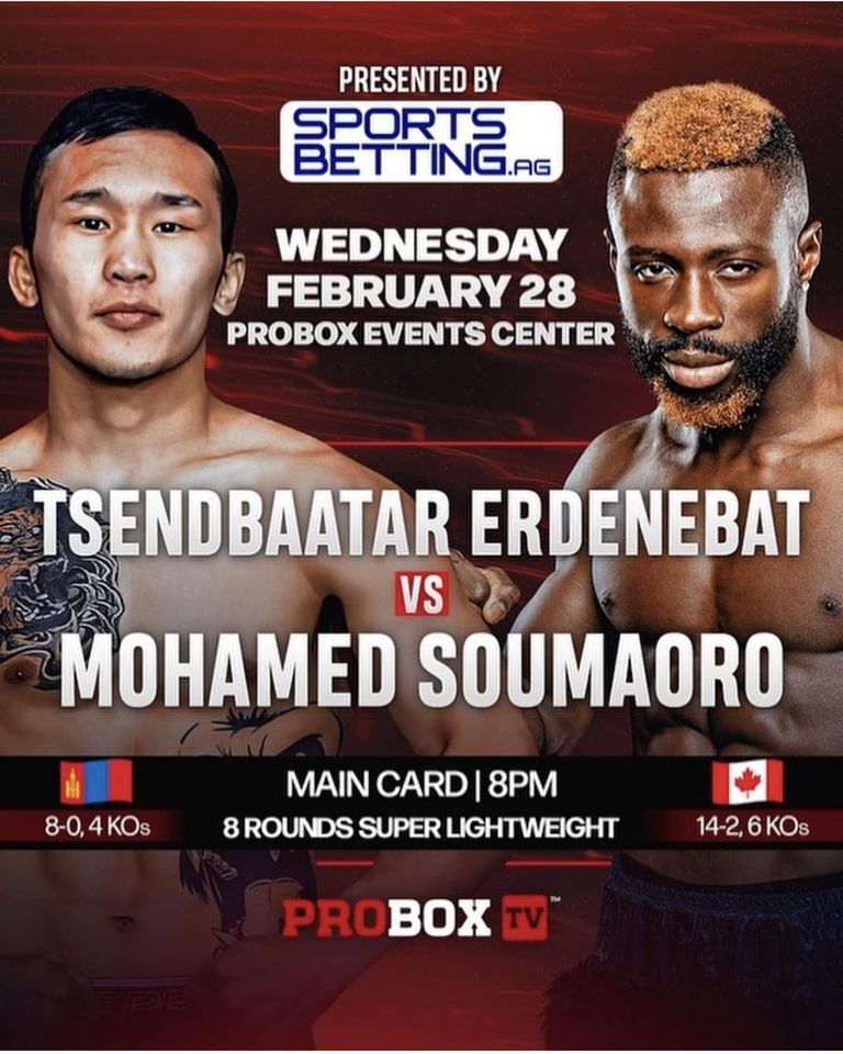 Монгол Улсын гавьяат тамирчин, дэлхийн аваргын хүрэл медальт, Ази тивийн аварга, Э.Цэндбаатарын ээлжит тулаан болно. Тэрбээр ээлжит тулаанаа тун удахгүй хоёрдугаар сарын 28-ны өдөр Гвиней Улсад төрсөн Канад Улсын иргэншилтэй боксчин Мохамед Сумаоротой тулалдахаар болжээ.