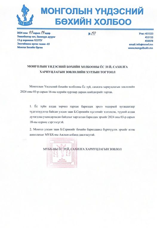 | Улсын заан Б.Серикийн барилдах эрхийг өнөөдрөөс сэргээлээ |
