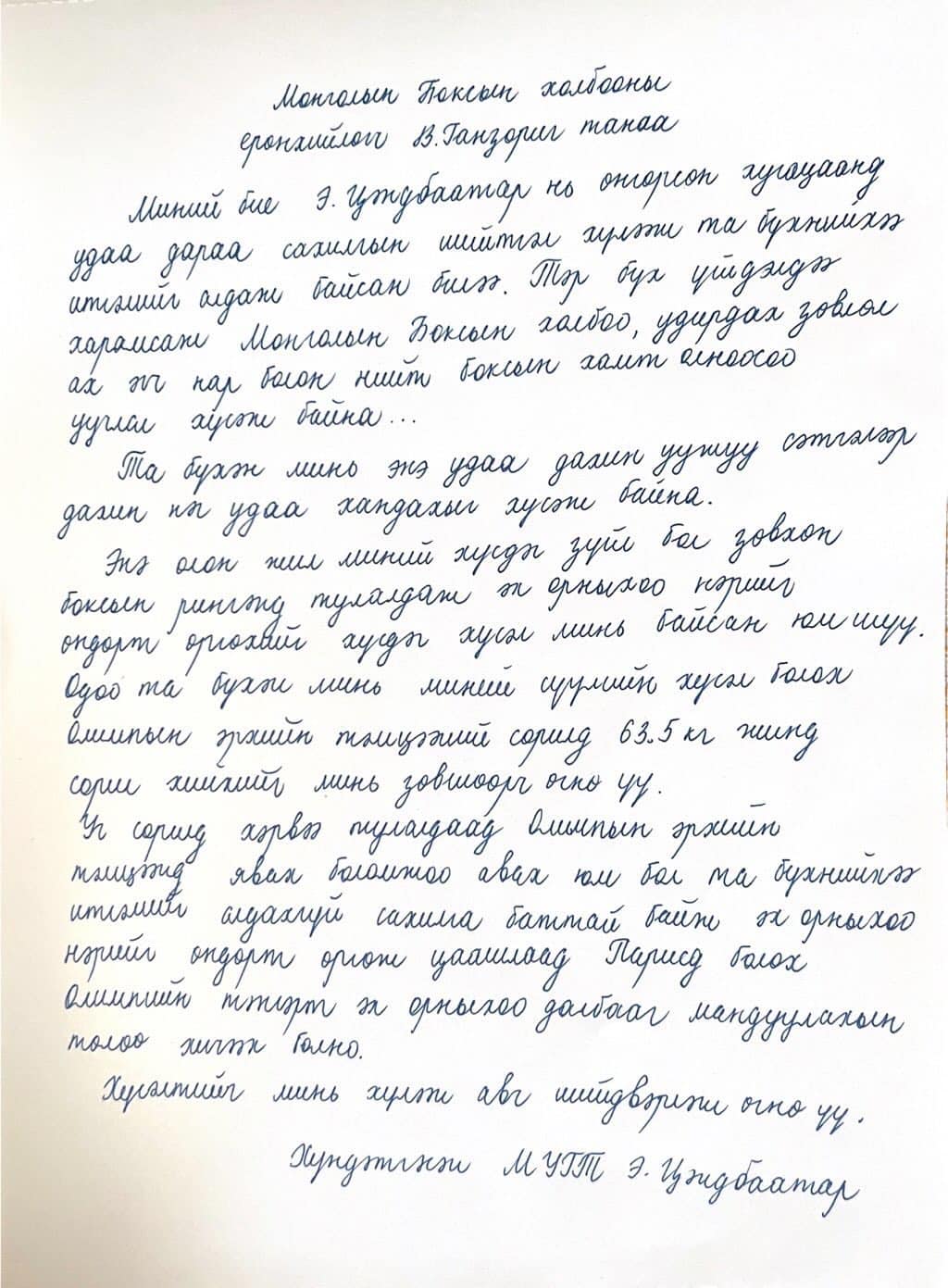 | Э.Цэндбаатар олимпын эрхийн тэмцээнд оролцох хүсэлтээ уламжлав |