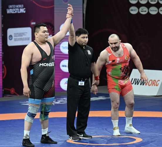 Харин дараа нь Өмнөд Солонгосын бөх Ким Минсёкод 5:1-ийн харьцаатай ялагдаж, улмаар дагах барилдаанд шилжиж, финалын шатанд хүрэл медалийн төлөө Хятадын бөх Мэн Лин Жэтэй өрсөлдөхөөр боллоо.