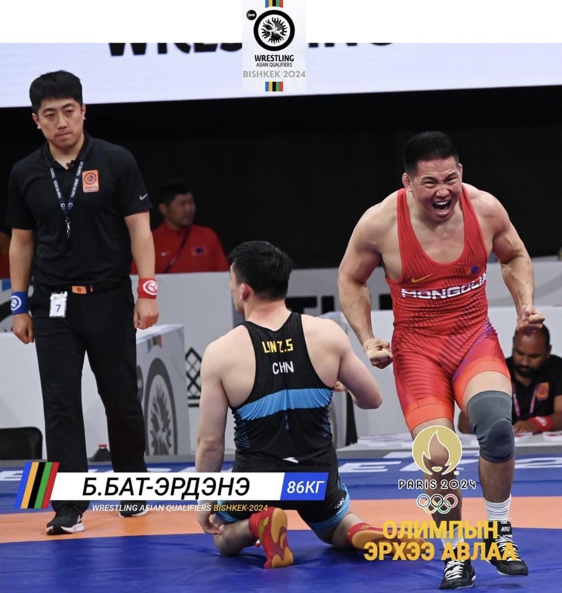 Киргизстан Улсад чөлөөт бөхийн олимпын эрх олгох Ази тивийн “БИШКЕК-2024” тэмцээн өнөөдөр эхэллээ. Эрэгтэйчүүдийн 86 кг-д залуучуудын ДАШТ-ий хүрэл, залуучуудын Азийн аваргын мөнгөн медальт, ОУХМ Б.Бат-Эрдэнэ, 125 кг ДАШТ-ий мөнгө, хүрэл медальт, МУГТ М.Лхагвагэрэл нар “Парис 2024” олимпын наадамд барилдах эрхээ авлаа. Харин 57 кг-ын жинд залуучуупын ДАШТ-ий хүрэл медальт М.Мөнх-Эрдэнэ, Киргизстаны бөхтэй 3:3-аар оноо тэнцэж, сүүлийн оноогоор ялагдал хүлээв. ОУХМ Г.Ганхуяг, Ираны бөхөд 3:0-ээр хожигдлоо.