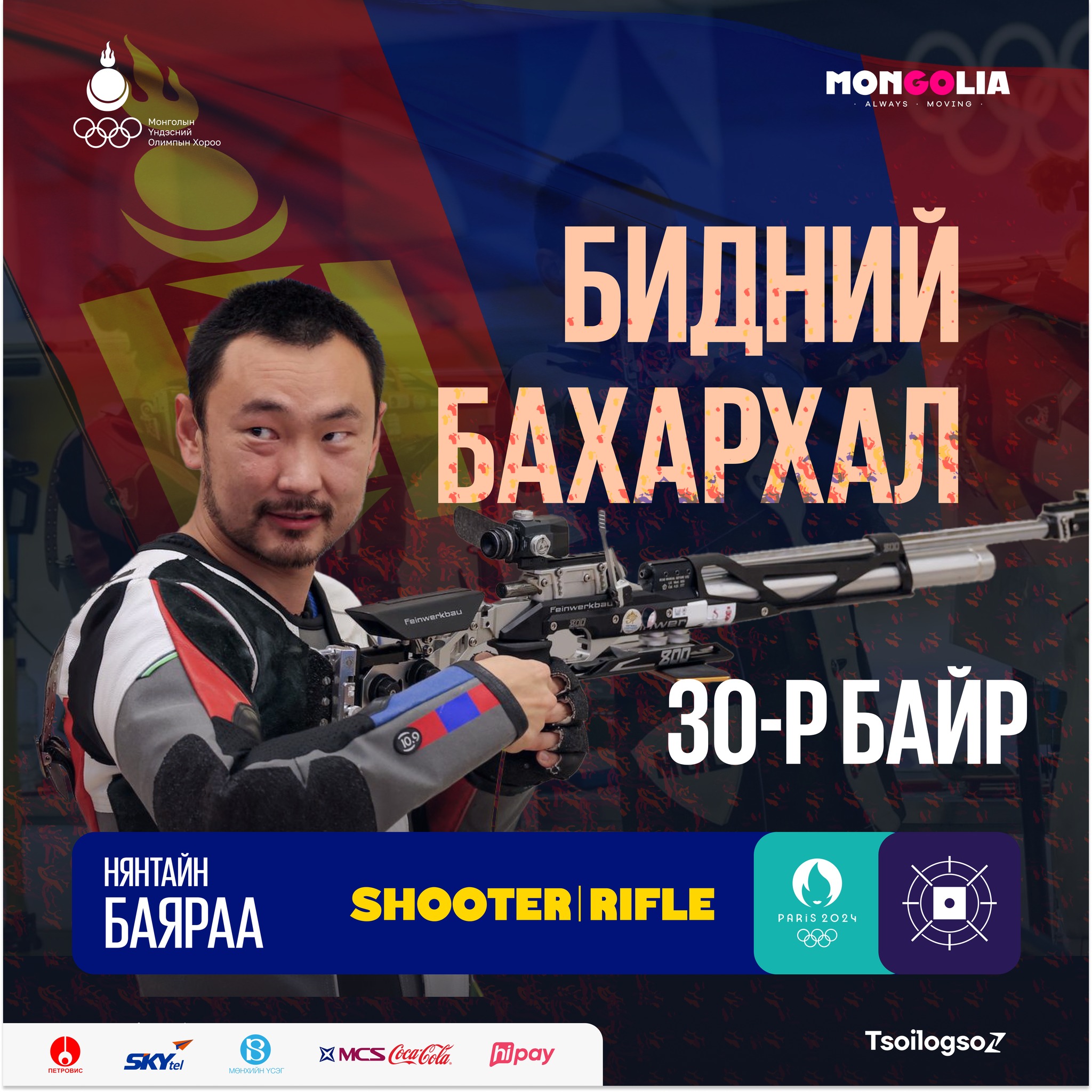 “Парис 2024” олимпын их наадмын буудлагын эрэгтэйчүүдийн 50 метрийн хийн урт буун дасгалын төрөл болов. Тус төрөлд манай тамирчин ОУХМ Н.Баяраа 584 оноогоор 30-р байрт шалгарч, тэмцээнээ өндөрлүүллээ.