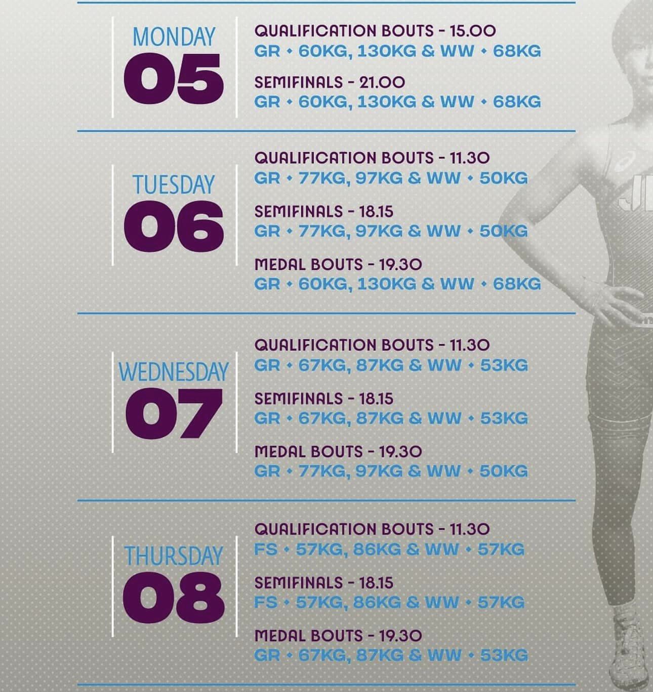 “Парис 2024” олимпын наадмын чөлөөт бөх, сонгомол барилдааны хуваарь гарсан байна. Манай улсаас сонгомол бөхийн төрөлд бөх барилдахгүй. Харин чөлөөт бөхийн эмэгтэйчүүдийн 50 кг-ын жинд МУГТ Д.Отгонжаргал, 53 кг-д ОУХМ Б.Хулан, 57 кг-д ОУХМ Б.Хонгорзул, 62 кг-д МУГТ П.Орхон, 68 кг-д ОУХМ Э.Дэлгэрмаа, 72 кг-д ОУХМ Э.Даваанасан нар хүч сорино. Харин эрэгтэйчүүдийн 65 кг-ын жинд МУГТ Т.Тулга, 86 кг-ын жинд ОУХМ Б.Бат-Эрдэнэ, 125 кг-д МУГТ М.Лхагвагэрэл нар барилдана.