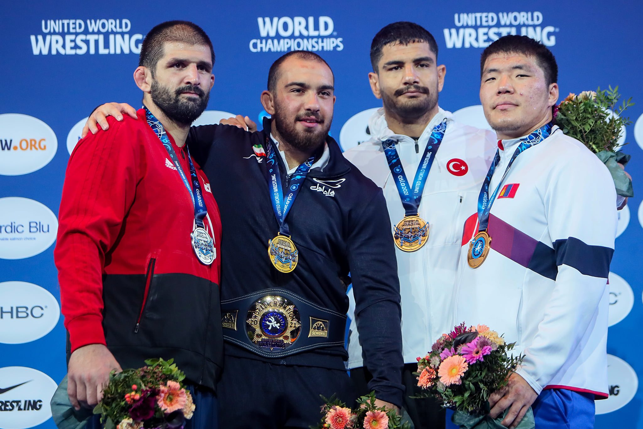 Туркийн домогт аварга, олимпын алт, хүрэл, ДАШТ-ий гурван алт, хоёр мөнгө, гурван хүрэл медальт Таха Акгүл болон олимпын хүрэл, ДАШТ-ий хошой аварга Ираны бөх Амир Хуссен Заре нар нөгөө хэсэгт хуваарилагджээ. Тус жингийн барилдаан өнөөдөр Улаанбаатарын цагаар 17:00 цагт эхэлнэ.