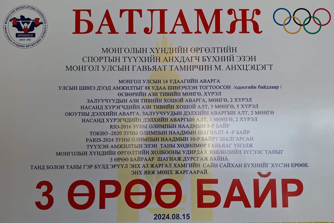 Б.Мягмарцэрэн 212.5 кг-ыг өргөж, дээд амжилт тогтоов