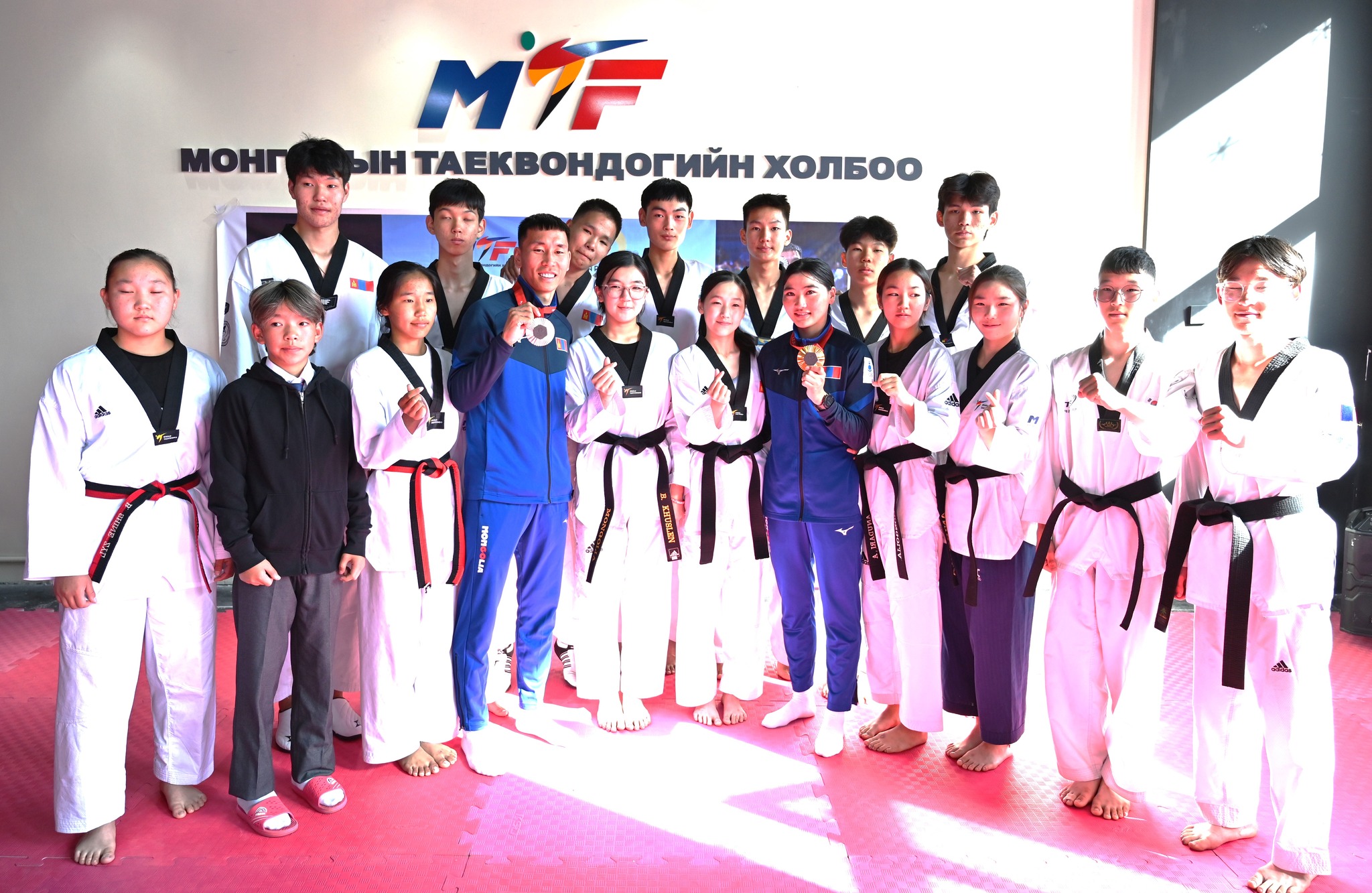 “Парис-2024” зуны 17 дугаар паралимпын наадмын таэквондогийн төрөлд алтан медаль хүртсэн У.Сүрэнжав, мөнгөн медаль хүртсэн Г.Болор-Эрдэнэ нар дасгалжуулагч Н.Эрдэнэбаатар, Д.Батнасангийн хамт эх орондоо ирсэн. Тэд бэлтгэл сургуулилалтаа хийдэг зааландаа хүрэлцэн очиж Үндэсний шигшээ багийн бодлогын хэрэгжилтийн хэлтсийн дарга Э.Билэгт болон холбооны удирдлагууд, таэквондогийн залгамж халаа болох бяцхан тамирчдадаа хүндэтгэл үзүүлэв.