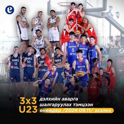 Монгол Улсын Ерөнхийлөгчийн ивээл дор Монгол Улсын нийслэл Улаанбаатар хотноо есдүгээр сарын 11-15 өдрүүдэд зохион байгуулагдах “FIBA 3x3 "U23" World Cup 2024” тэмцээн болно. Тус дэлхийн цомын тэмцээнд оролцох багууд бэлэн болжээ. Тус тэмцээнд манай улсаас олон улсын шүүгч, Бүрнээбаатрын Бурмаа ажиллахаар FIBA-аас томилогдлоо. Тэрбээр ДАШТ-ийг дэнслэх анхны Монгол улсын шүүгч болж байгаа юм. Тэмцээн Сүхбаатарын талбайд зохион байгуулагдана.