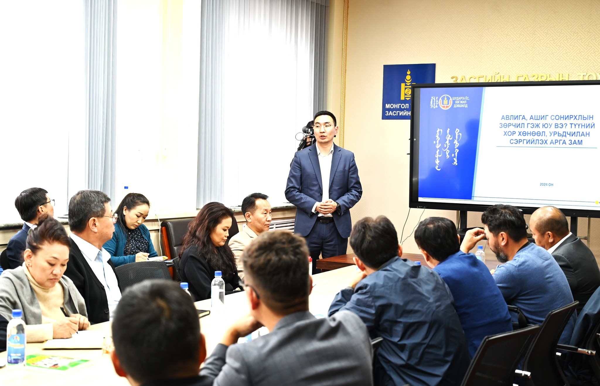 Сургалтаар АТГ-ын УССГХ-ийн ахлах ажилтан, ахлах комиссар Б.Тэрбиш “Авлига, ашиг сонирхлын зөрчил гэж юу вэ, спортын холбоодын санхүүжилтэд гарч буй эрсдэл, урьдчилан сэргийлэх арга хэмжээ, зөвлөмж” сэдвээр мэдээлэл хүргэв.