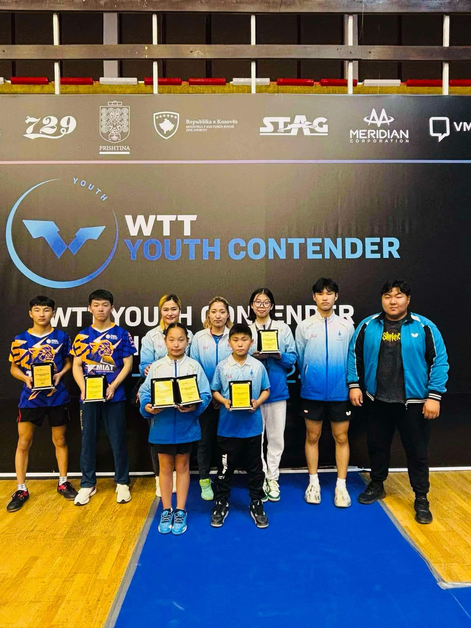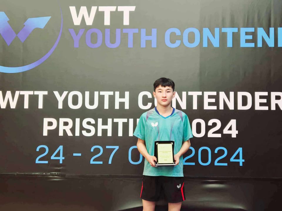 Ширээний теннисний өсвөр үеийн тамирчин Ө.Мөнх-Өлзий “Кosovo Open 2024” тэмцээний “U15” хүртэлх насанд финалд шалгарч мөнгөн медаль хүртлээ. Мөн нас өгсөн 16-17 насны ангиллын тэмцээнд оролцож хүрэл медаль хүртсэн байна. Тэрбээр энэ тэмцээнээс мөнгө хүрэл медаль авлаа. Одоо цааш Европын гурван улсад болох нээлттэй тэмцээнүүдэд оролцох аялан тоглолтоо үргэлжлүүлнэ. Тус Европын цуврал тэмцээнээс Э.Аялгуу “U11” ангилалд 1-р байр алтан медаль, “U13” насны ангилалд 2-р байр, Ө.Мөнх-Өлзий “U15” насны ангилалд 2-р байрт, “U17” насны ангилалд 3-р байрт орсон. Харин Х.Хулан “U15” насны ангилалд Английн тамирчин Макс Радивентэй холимог хос болон оролцож “U15” ангилалд алтан медаль, А.Билгүүн “U15” насны ангилалд 3-р байр, Г.Түвшинсайхан “U11” насны ангилалд 3-р байрт шалгарч хүрэл медаль хүртсэн байна.