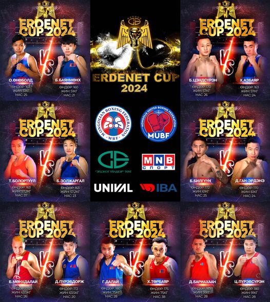Монголын нэгдмэл боксын холбоо (Mongolian United Boxing Federation)-оос Мэргэжлийн боксын халз тулааныг анх удаа Эрдэнэт хотод зохион байгуулах гэж байна. Тус тэмцээн энэ сарын 6-ны өдөр Эрдэнэт хотын “Хангардь палас”-т болох “Erdenet Cup-2024” боксын тулаанд нийт долоон жинд 14 тамирчин өрсөлдөнө. Үүнээс зургаан тулаан нь эрчүүдийнх бол нэг нь эмэгтэй боксын халз тулаан байх юм. “Erdenet Cup-2024” мэргэжлийн боксын тулааныг Монголын нэгдмэл боксын холбоо, Монголын боксын холбоо хамтран зохион байгуулж, их спортыг дэмжигчээр “Эрдэнэт үйлдвэр” ТӨҮГ, MNB Спорт суваг, “Unival” студи ажиллаж байгаа юм.